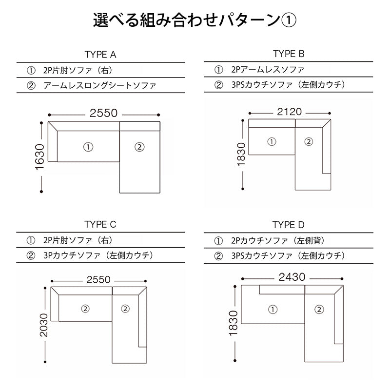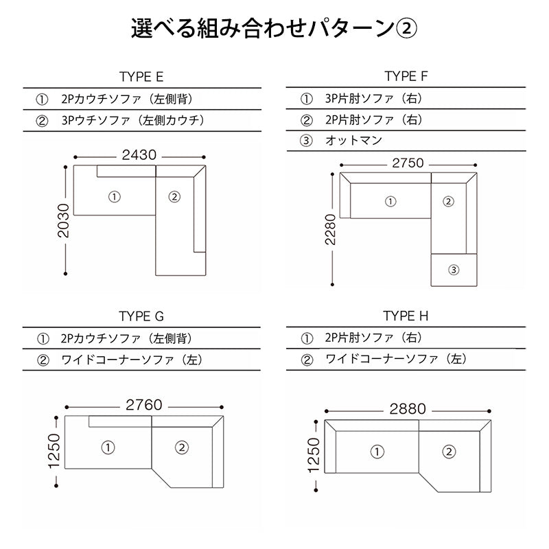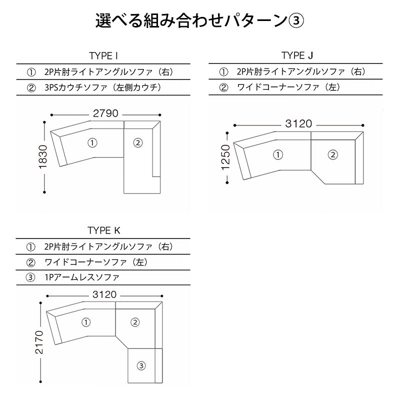 【TYPE A】から【TYPE K】まで、様々なレイアウトが可能です。お好きな組み合わせをお選びください。