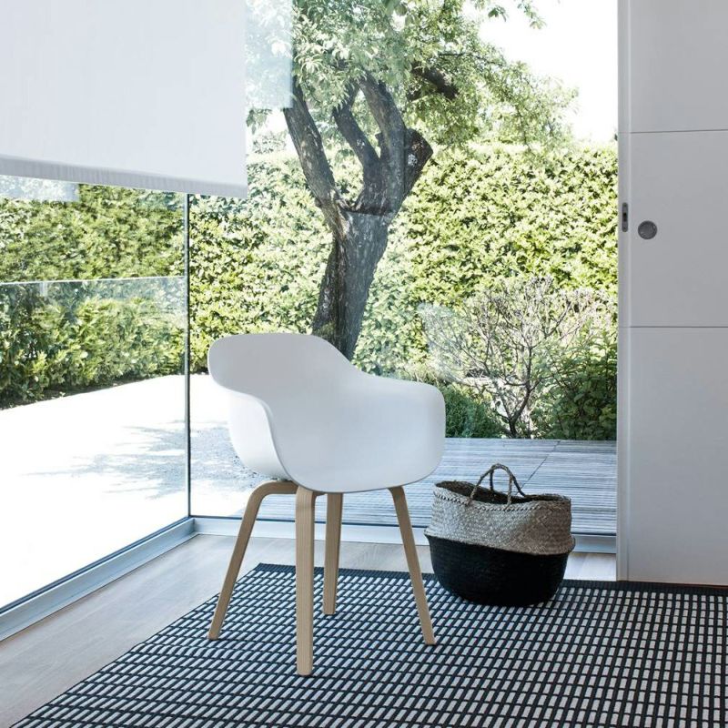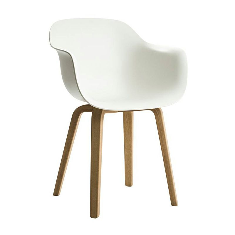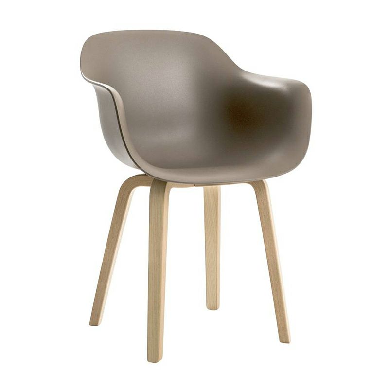 上部が滑らかな曲線を描く木製の脚部が、ポリプロピレン製のシートときわめて自然に結び付くデザイン。座ることを促すかのような表情で優しく体を受け止め、大らかな丸みを帯びたシェル型のシートは、ポリプロピレン、ファブリック、レザーの3種類展開。