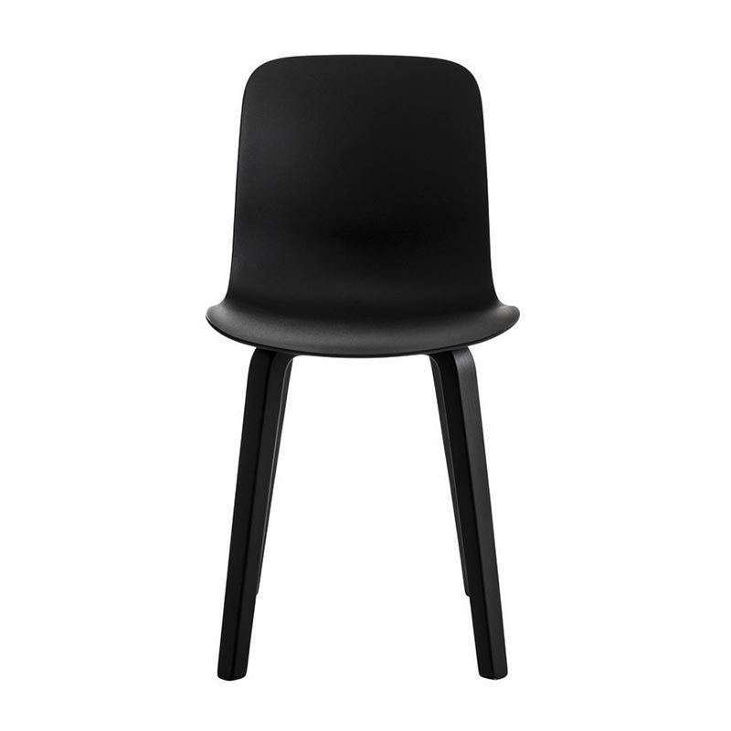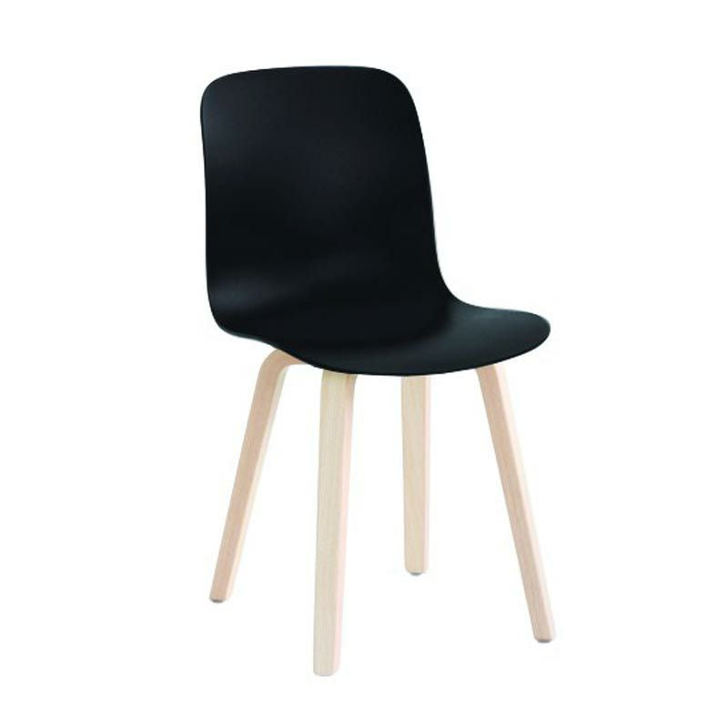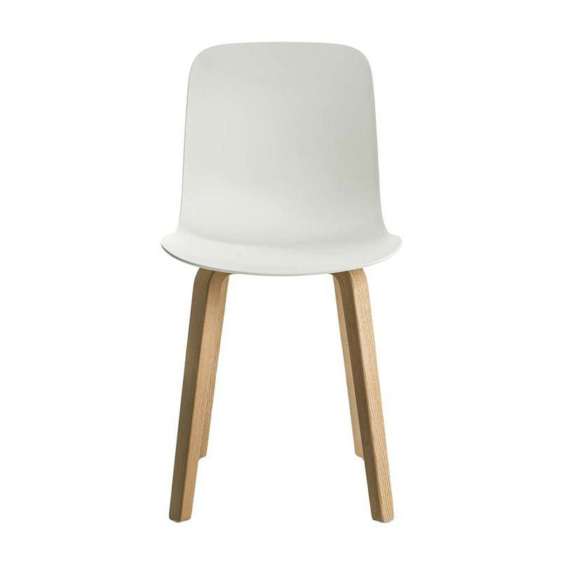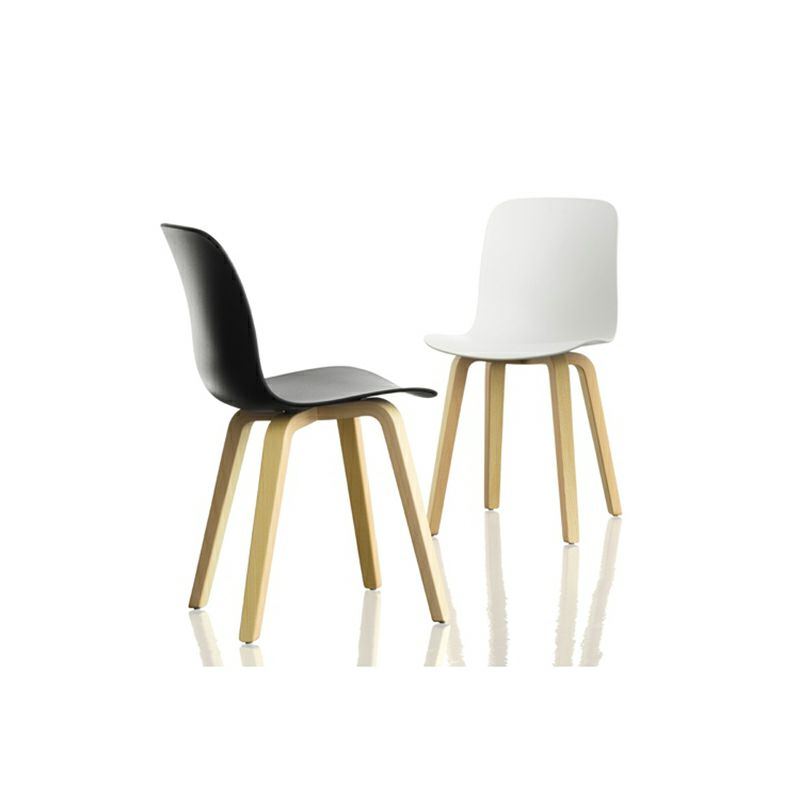 上部が滑らかな曲線を描く木製の脚部が、ポリプロピレン製のシートときわめて自然に結び付くデザイン。座ることを促すかのような表情で優しく体を受け止め、大らかな丸みを帯びたシェル型のシートは、ポリプロピレン、ファブリック、レザーの3種類展開。