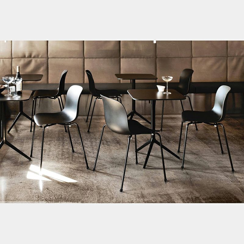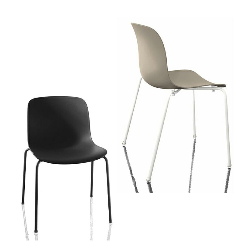 究極にシンプルなフォルムからは、一見固そうなイメージを抱きますが、カーブの付いた座面が優しい座り心地。カラーバリエーションの豊富さと6脚までスタッキング可能という機能性で、ダイニングにはもちろんオフィスやコントラクトシーンでも活躍する使い易いチェアです。