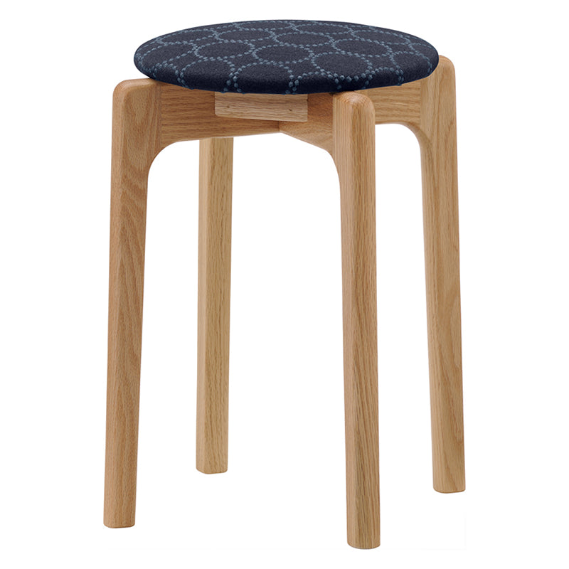 可愛らしい丸い座面は直径28cmとやや小振りですが、座面クッションの中材はウレタン3層構造になっており、しっかりとした座り心地を実現。8脚までスタッキング(積み重ね)が可能なので、収納場所にも困りません。