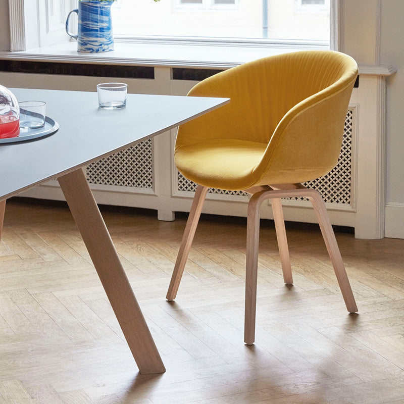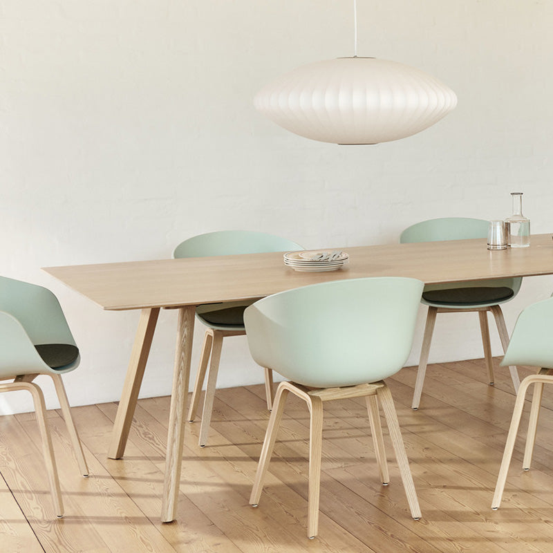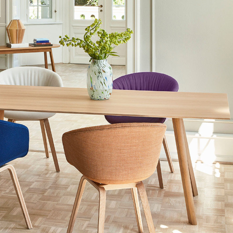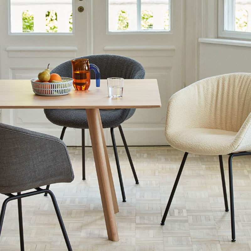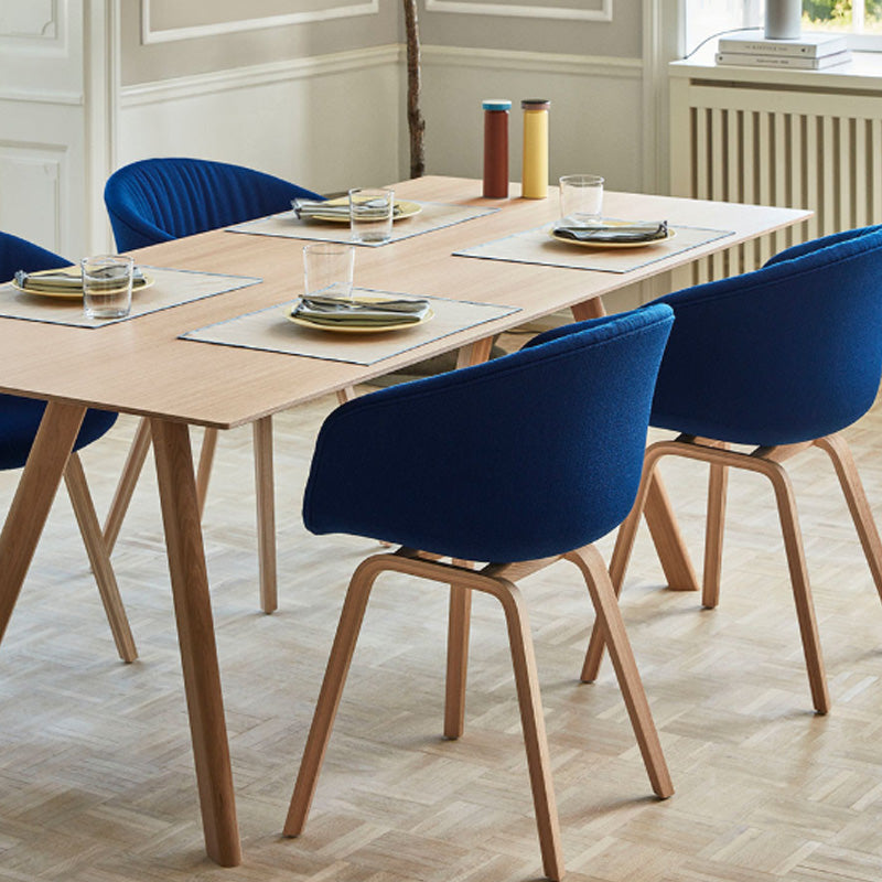 CPH 30は、シリーズの一貫した特徴席な角度の脚と使いやすい長方形天板を特徴としたダイニングテーブルです。