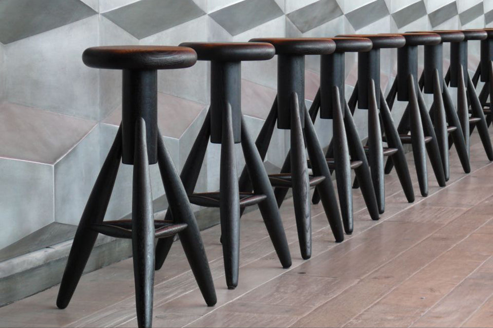 プラスチック素材を利用した先鋭的なデザインを数多く生み出していますが、「ロケットバースツール」は、彼にとっては珍しい木材を使用したデザインです。