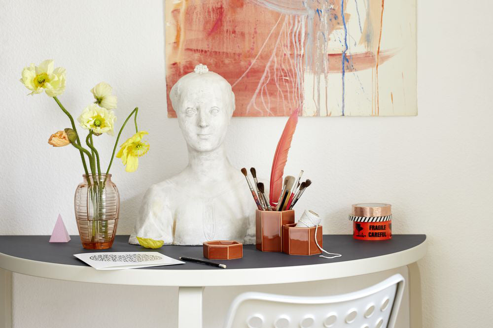 半円形のテーブルは、窓辺に設置したり、ライフスタイルに合わせて自由自在の使い方ができます。
