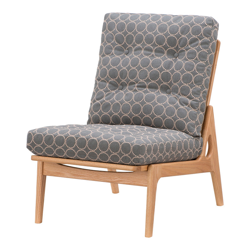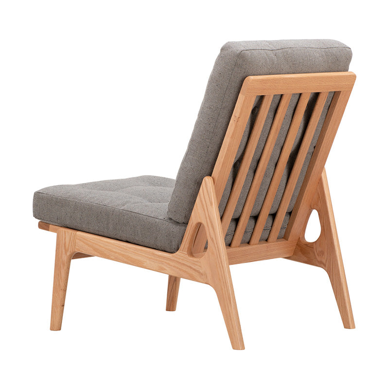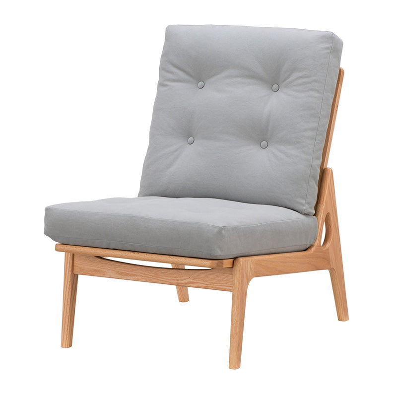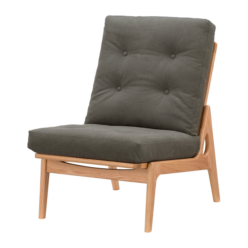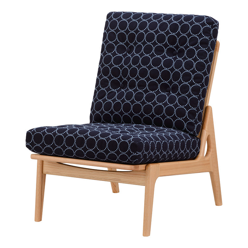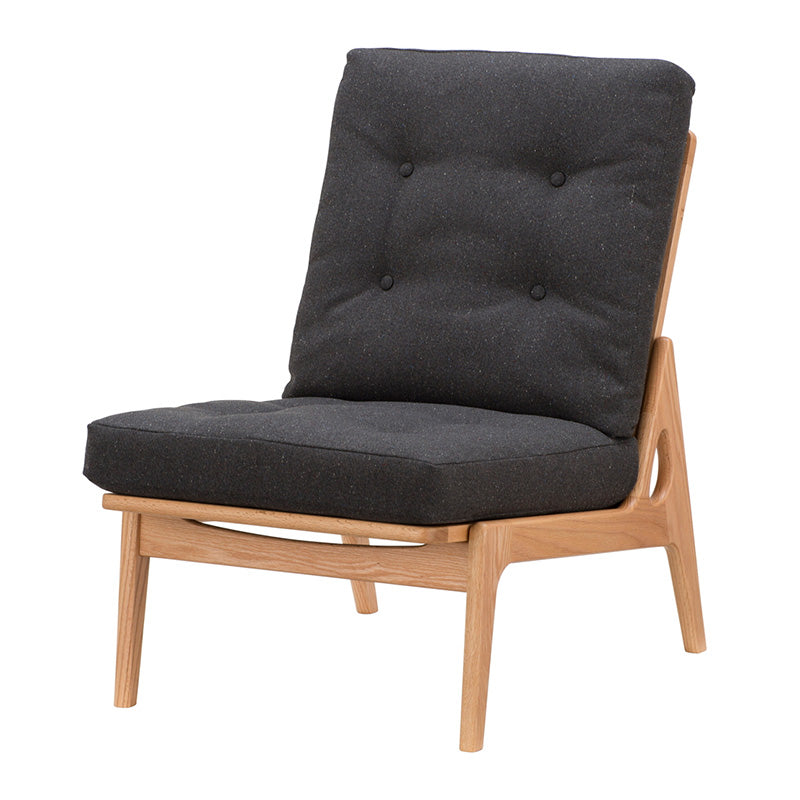 通常仕様のオークフレームチェアから背クッションを約10㎝(背板は約7cm)高くし、よりゆったりとした安定感のある掛け心地を実現。