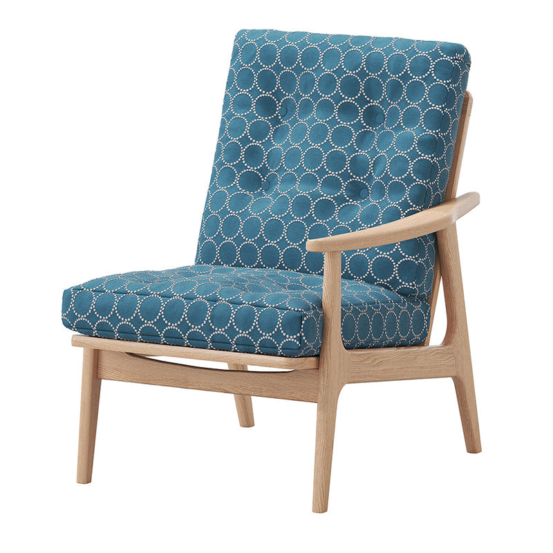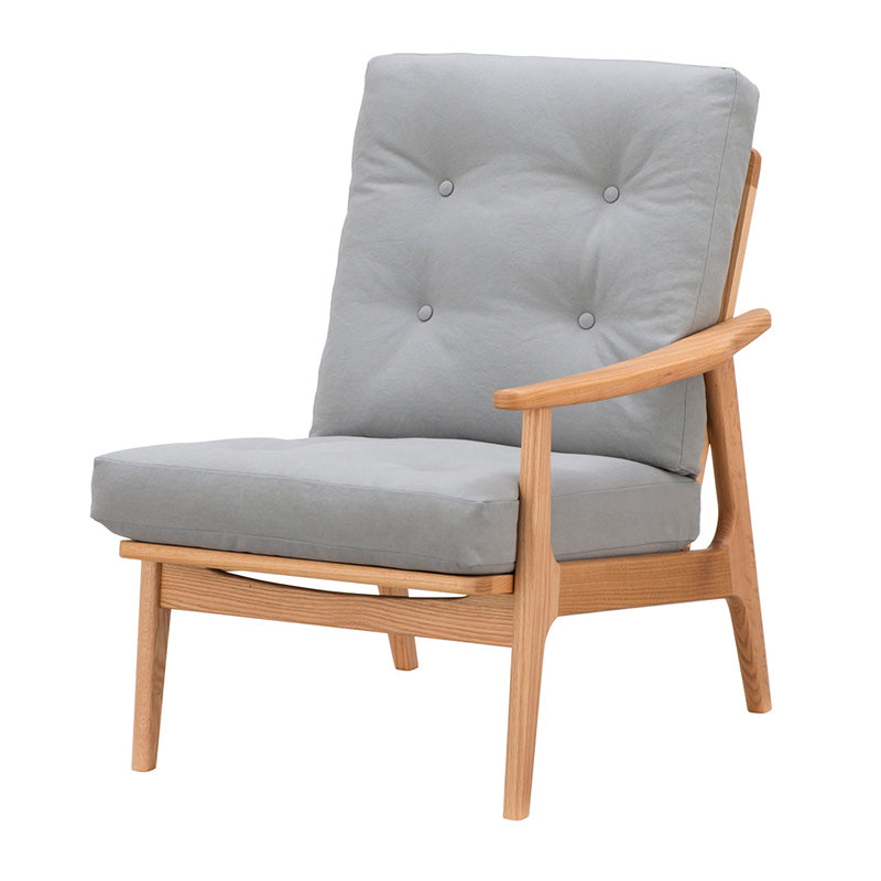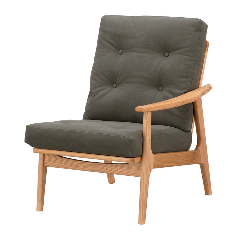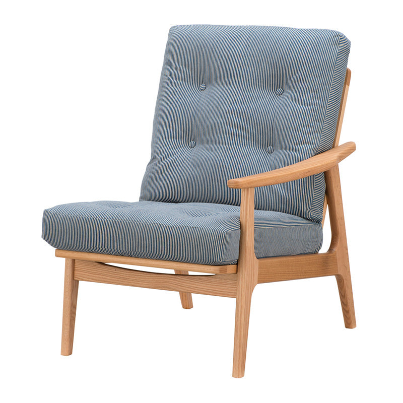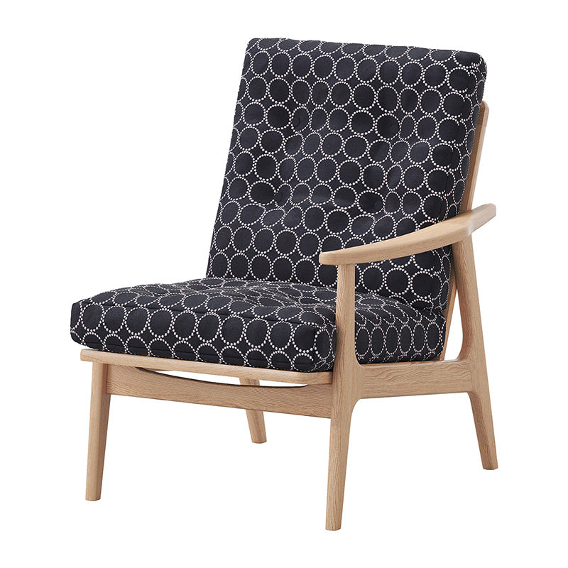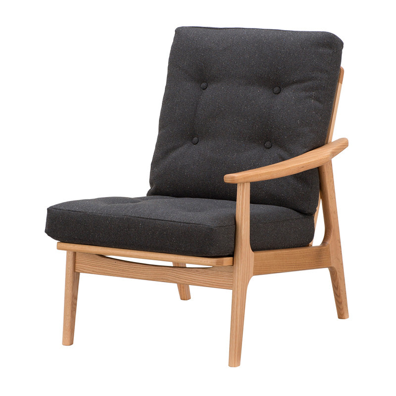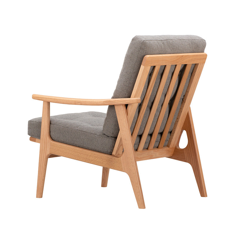 通常仕様のオークフレームチェアから背クッションを約10㎝(背板は約7cm)高くし、よりゆったりとした安定感のある掛け心地を実現。