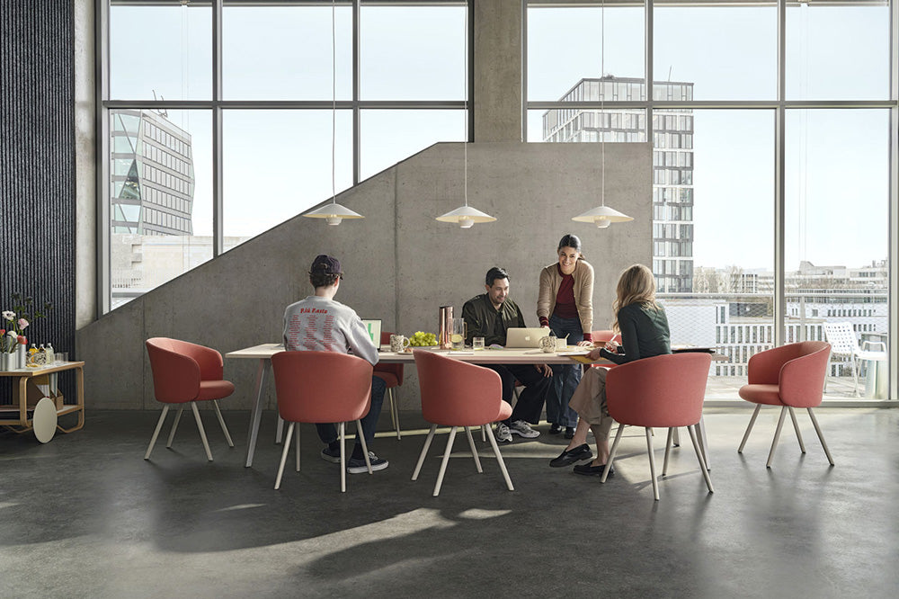 インテリア空間のイメージや大きさなどに合わせて、アームチェアとサイドチェア、カバーとレッグの種類・色の組み合わせ方で、住まいからオフィスまで、あらゆる空間に調和させることができます。