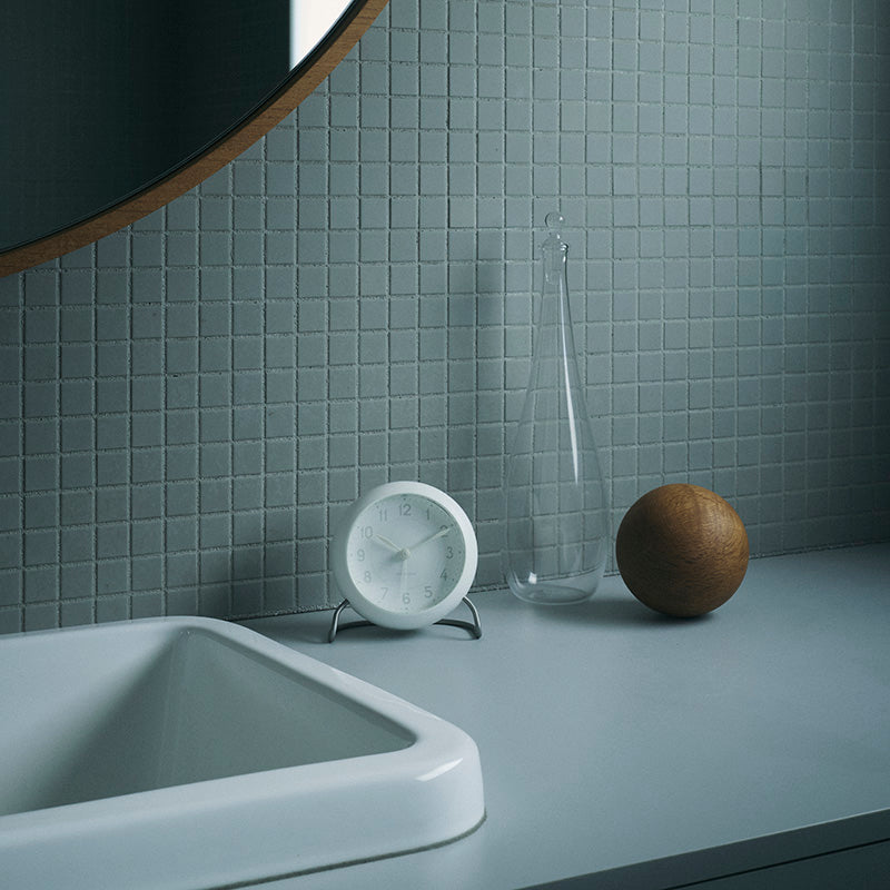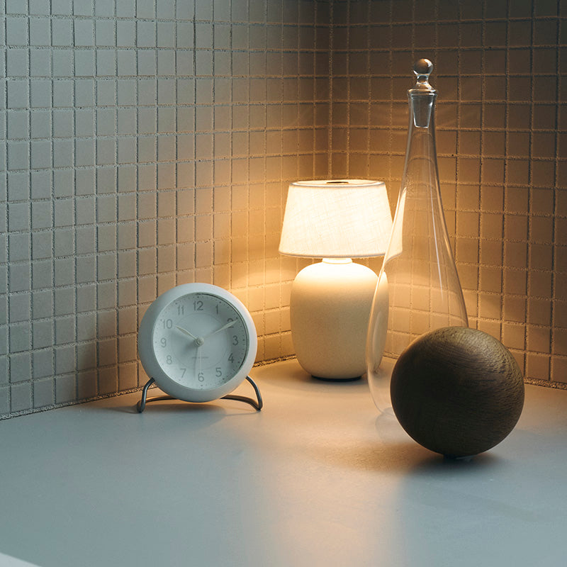 アルネ・ヤコブセン創業者アルネ・ヤコブセンのデザイン哲学「トータルデザイン」に基づき、無駄を一切排除したシンプルで普遍的な美しさが特徴です。文字盤の視認性にこだわり、機能美を追求したデザインとなっています。オリジナルのデザインを尊重しつつ、テーブルクロックのLEDライト、ムーブメントセンサー、スヌーズ機能など現代の技術も積極的に取り入れています。