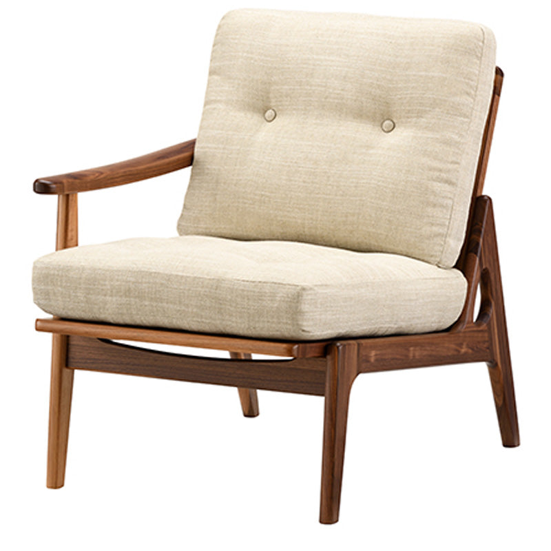 当時の造形はそのままに、座り心地や使い勝手を改良して、2006年「オークフレームチェア」シリーズとして新たな息吹が吹き込まれ、その後、「ウォールナットフレームチェア」シリーズがリリースされました。