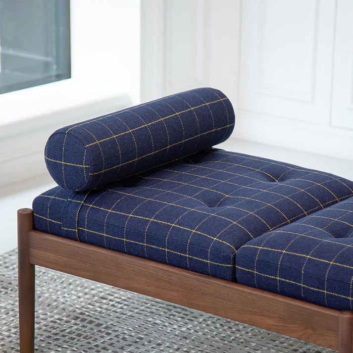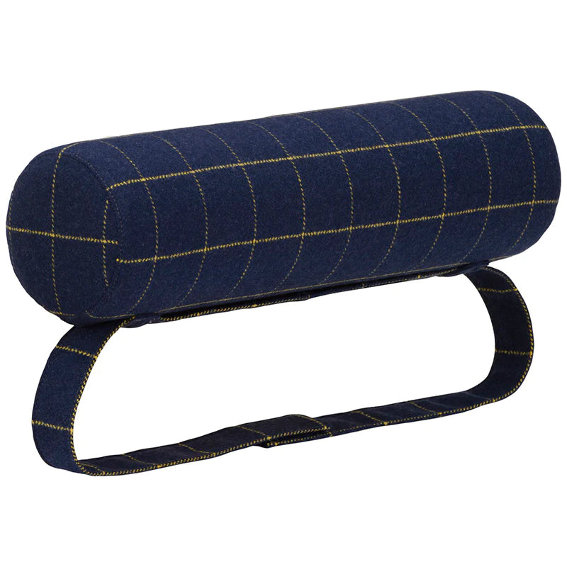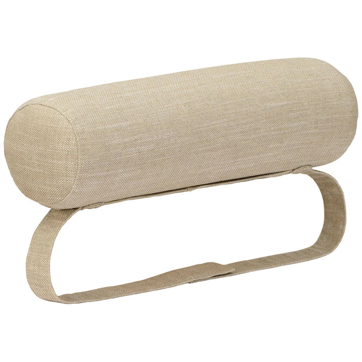 そのベンチソファに合わせて使えるオプションアイテム「ボルスタークッション」です。ボルスタークッションは、付属のベルトで座クッションに固定することができます。クッションを置き、もたれかかったりなど様々な使い方のできるオプションアイテムです。