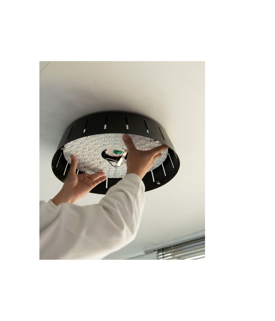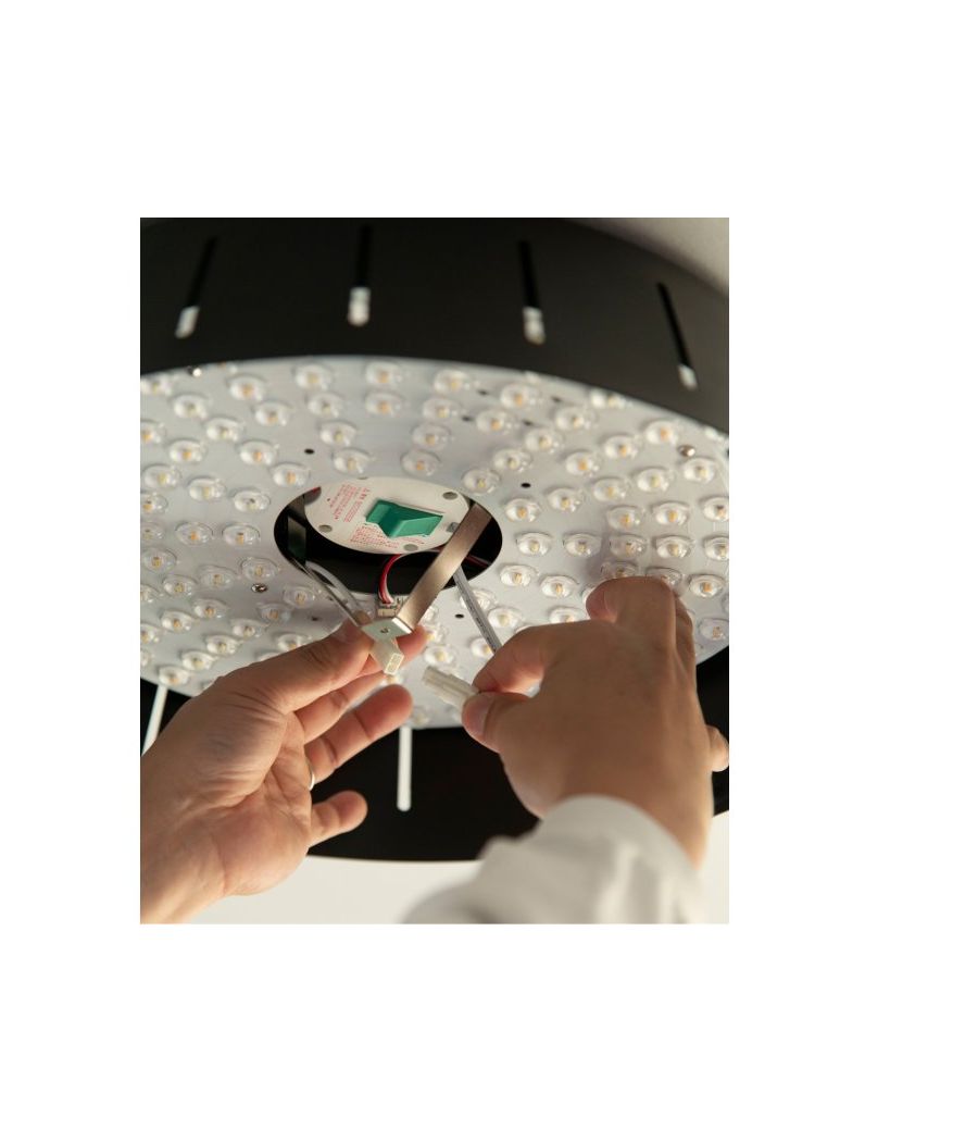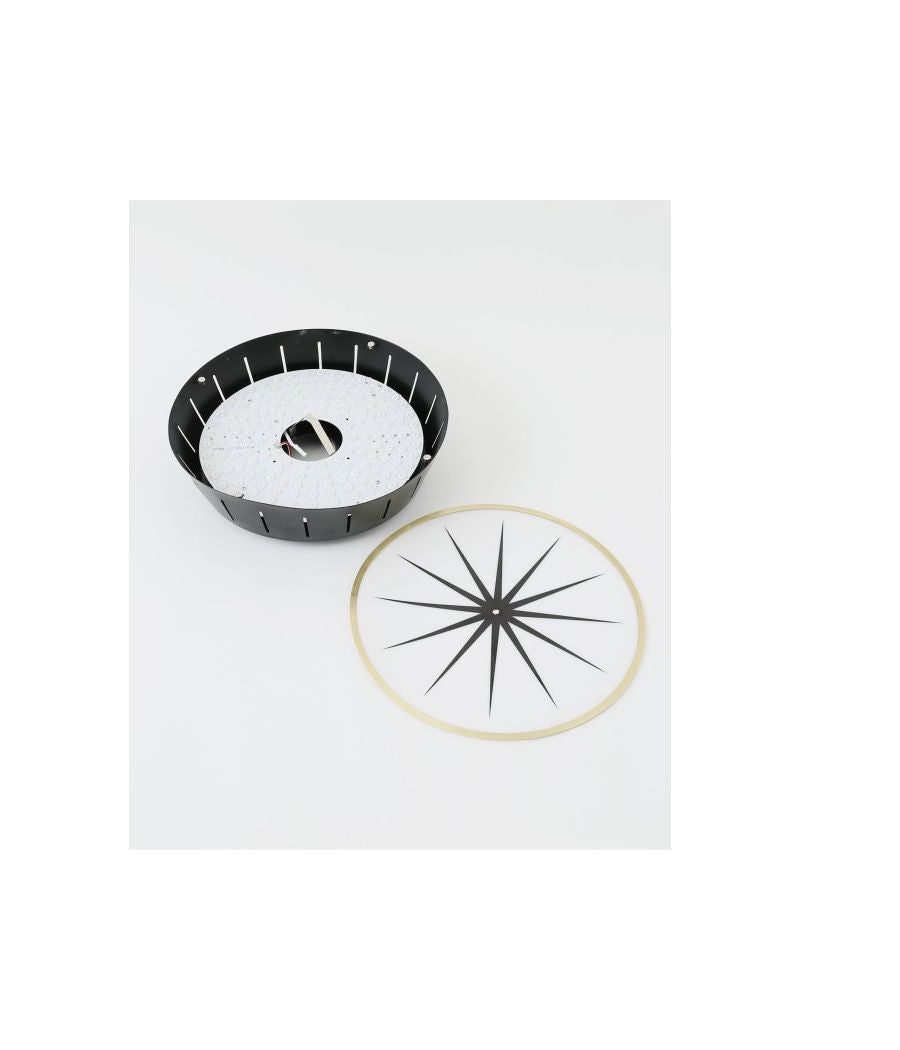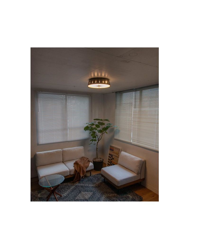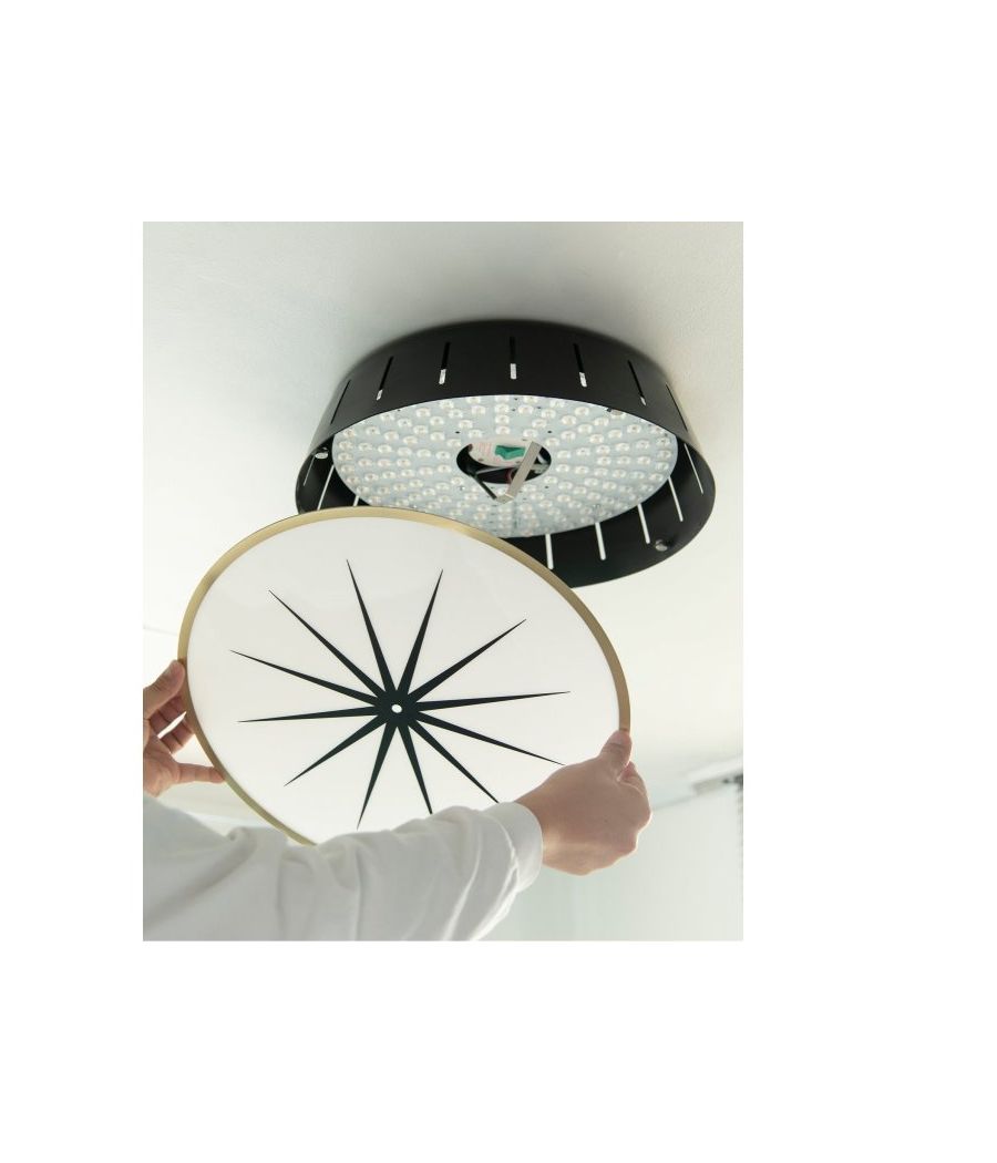 スペースエイジなデザインを取り入れ、LED器具を採用することで、現代の最新の機能を備えるシーリングライトになりました。