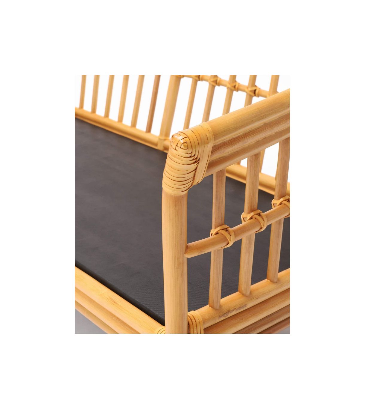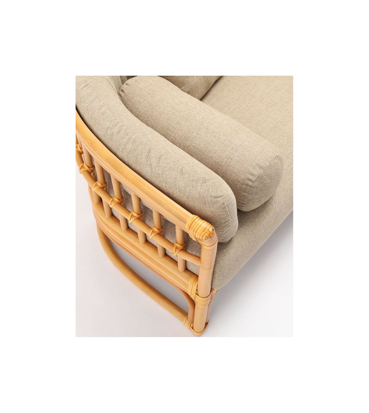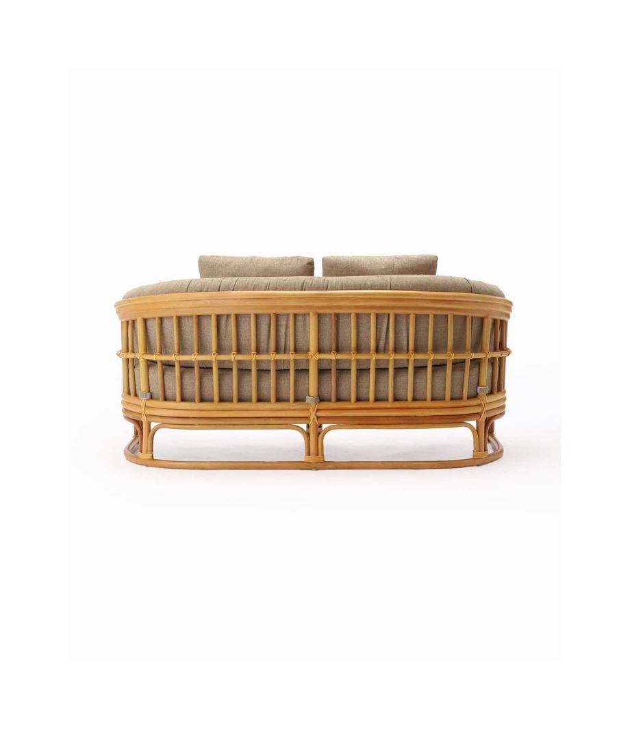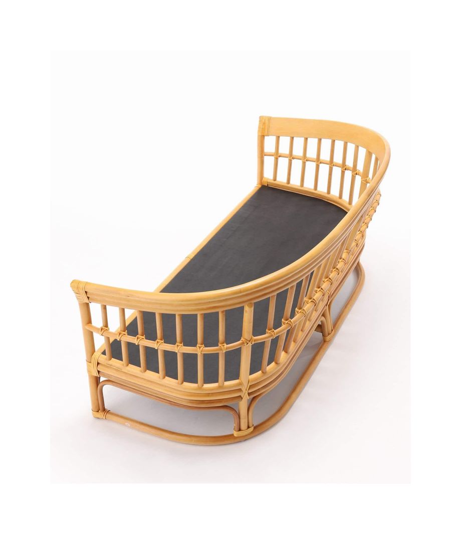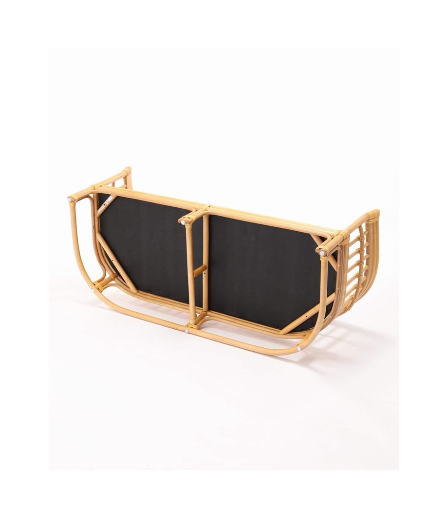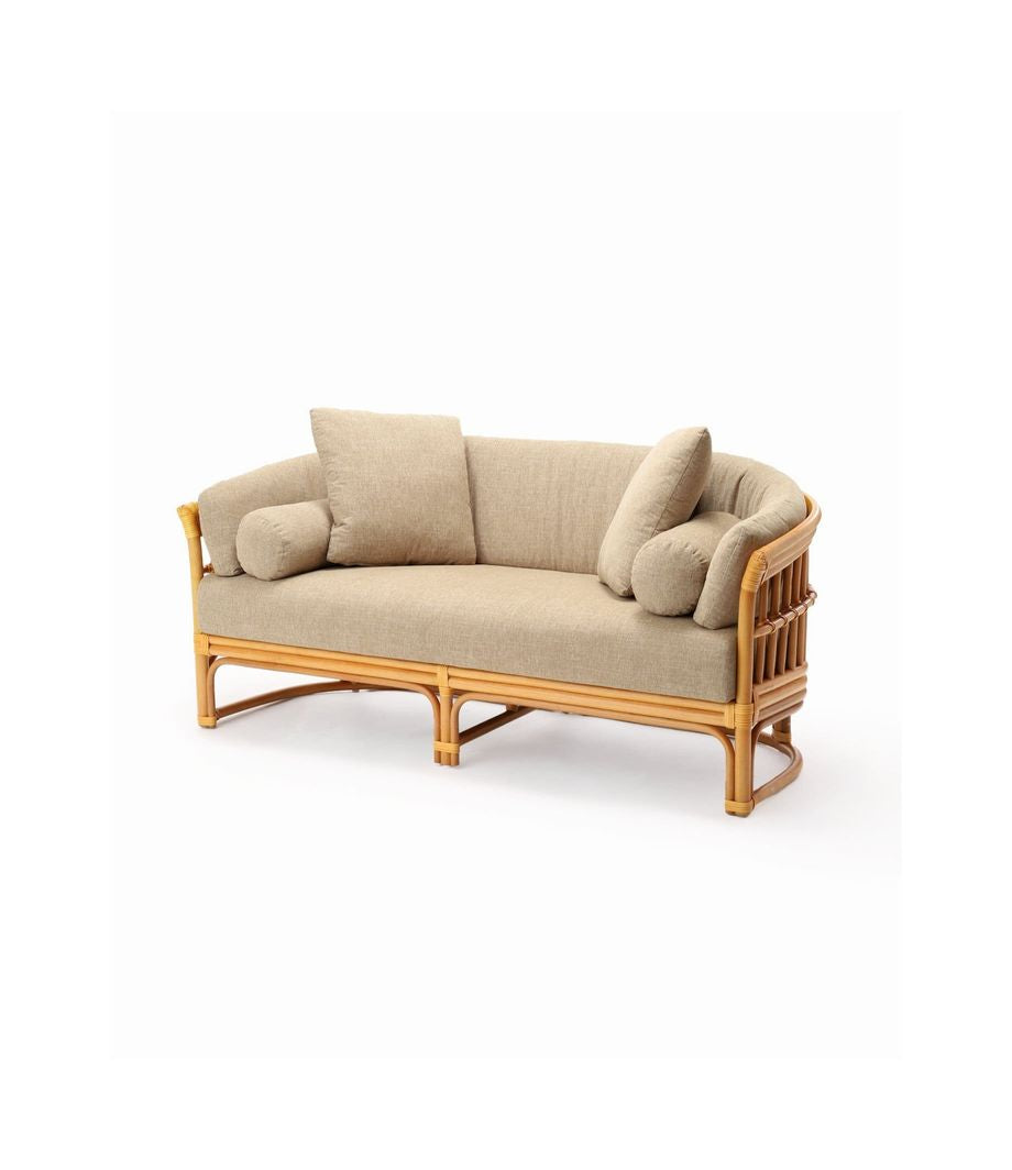 アメリカ西海岸地方ではポピュラーな意匠であるラタン素材を採用しており、木家具では表現し辛いカーブをふんだんに取り入れています。