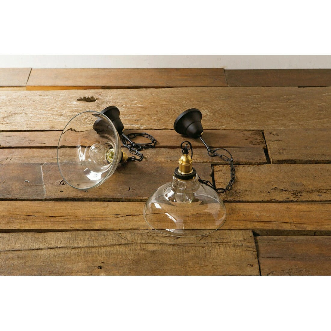 ホーローのシェードをクリアガラスで成型したランプ。モダンとインダストリアルが融合したようなミックス感が新しいペンダントランプ。