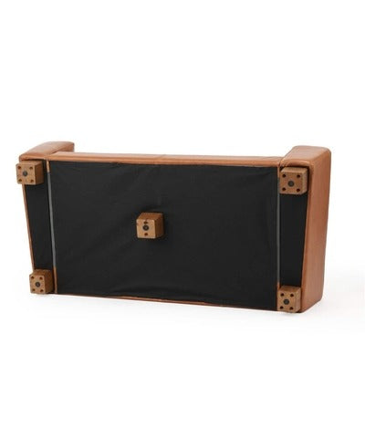 【素材】本体:天然木(パイン材) 脚:天然木(ラバーウッド材) 張り材:皮革