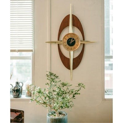 真鍮の星形や、その周りの木部がどこか惑星のように見えるSAGA WALL CLOCK。