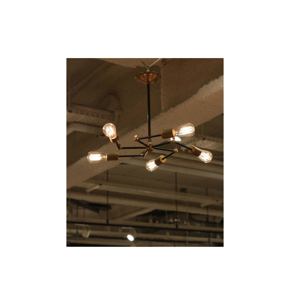 ACME Furniture(アクメファニチャー)ソリッド ブラス ランプ 5アーム ブラックパイプ
