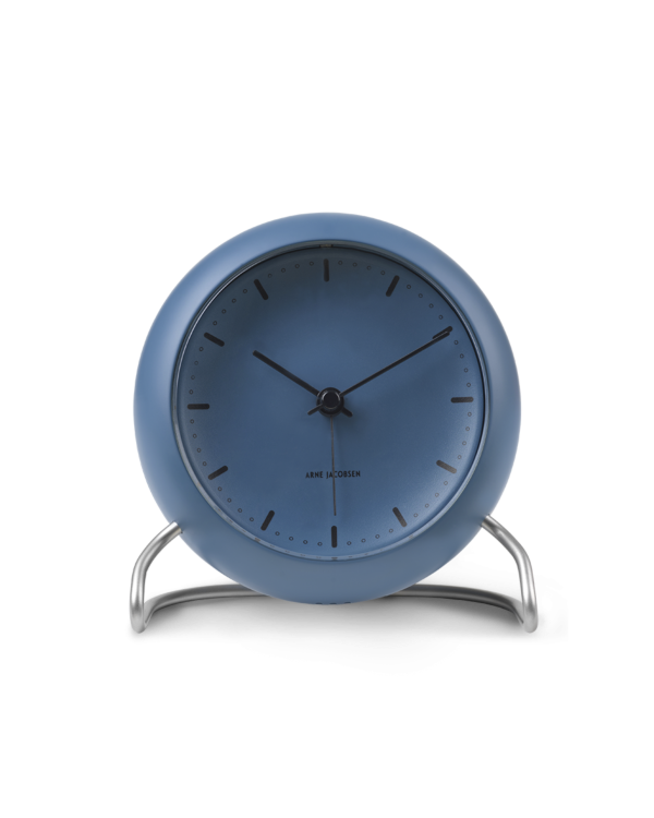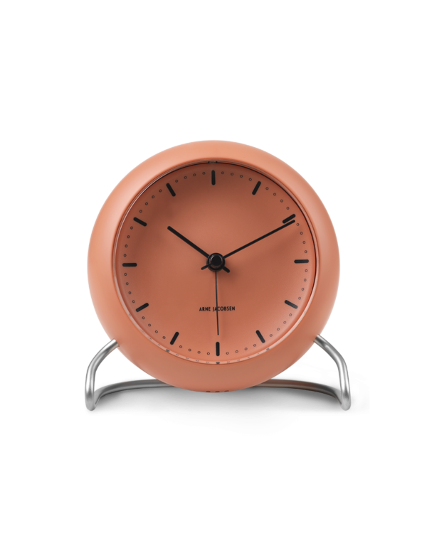 アルネ・ヤコブセンのテーブルクロックは、アラーム、スヌーズ機能、そして時計上部の見えないセンサーによって作動するライトの両方を備えています。とても美しく、シンプルで、クラシックな目覚まし時計です。