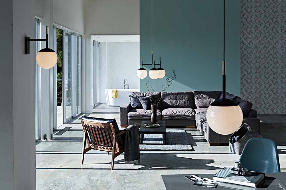 職人がマウスブローで一つ一つ仕上げたガラスグローブがコンテンポラリーな雰囲気を演出する「BLISS」シリーズ。 球体のガラスグローブから広がる光が、しっとりとしたリラックスムードを演出し、 スタイリッシュで快適な暮らしへ空間をアップデートします。