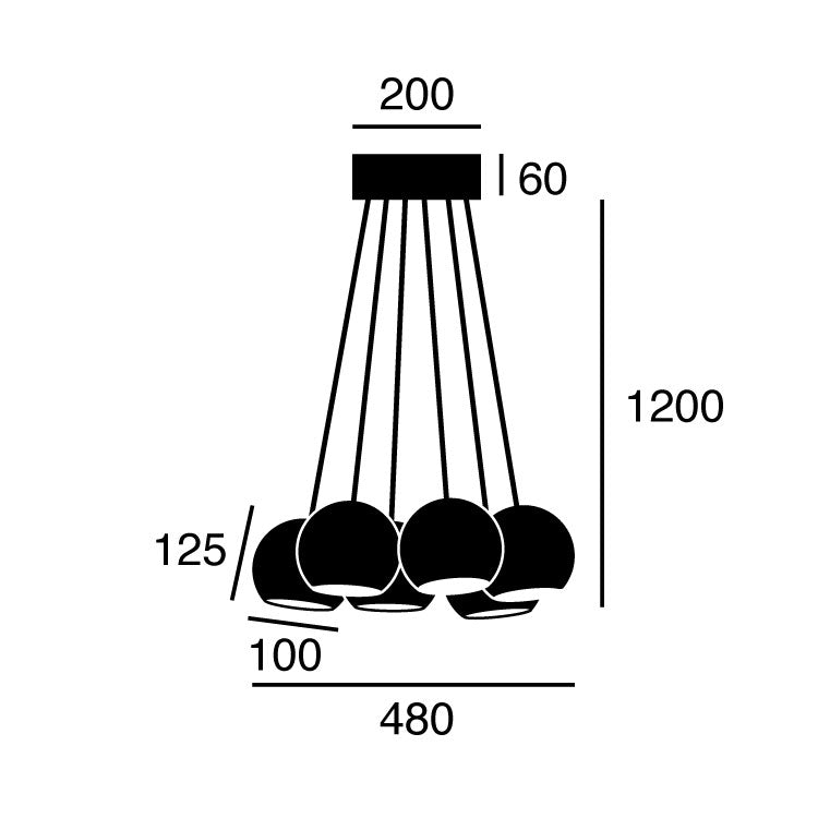 ボール状シェードそれぞれの高さを調節し全体のシルエットはもちろん、光の加減も自由に操ることが可能です。