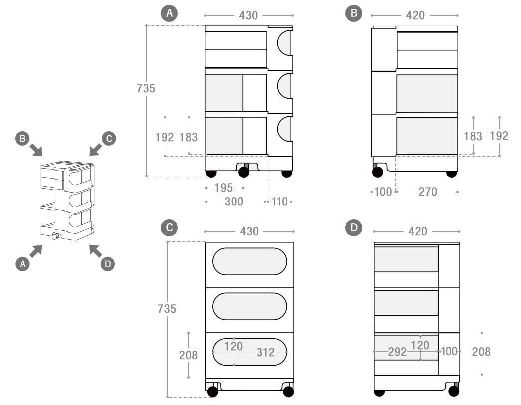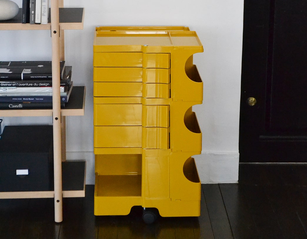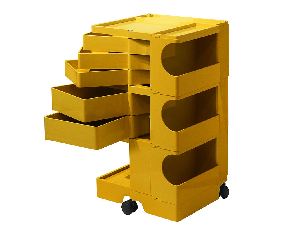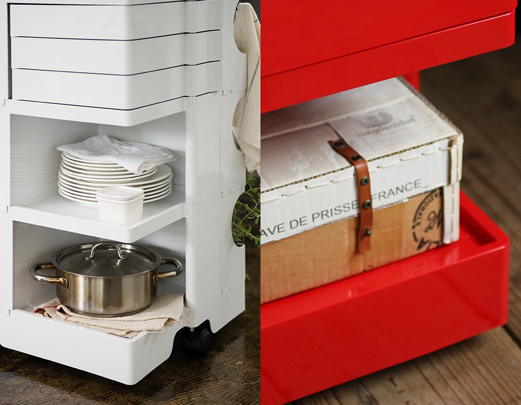 ボビーワゴンは、キャスター付きの本体を回転させることで側面4面すべてを効率的に使える、デザイン性と機能性に優れた収納家具です。