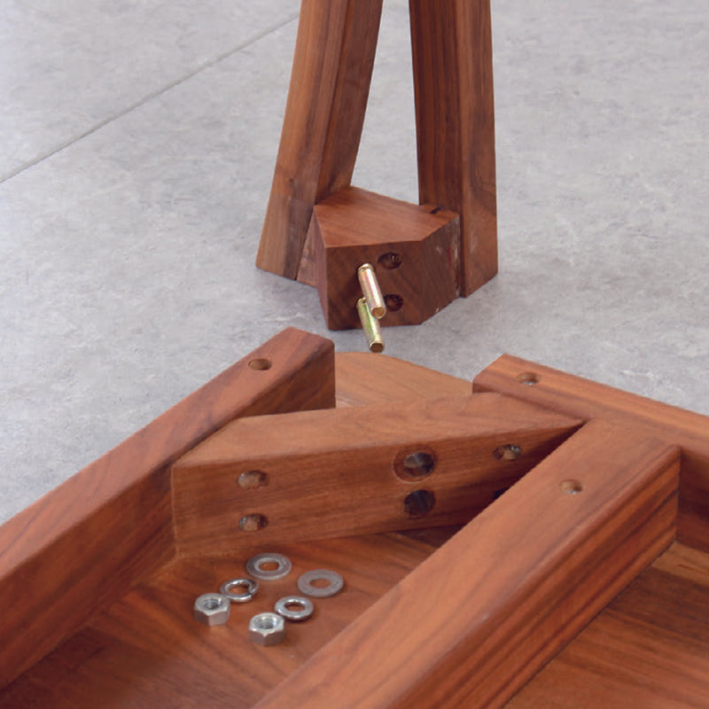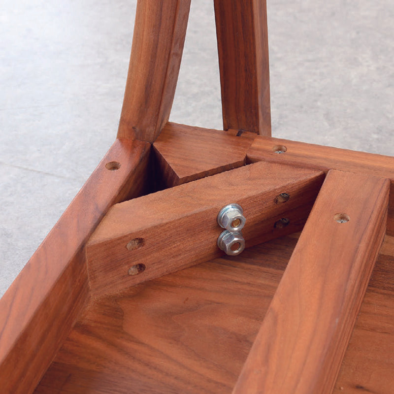 裏も丁寧に仕上げられ、豊かな木質感を味わえる美しい仕上がりに。脚はボルトとナットで天板に固定し、ノックダウン式ながらテーブルに必要な強度を確保しています。