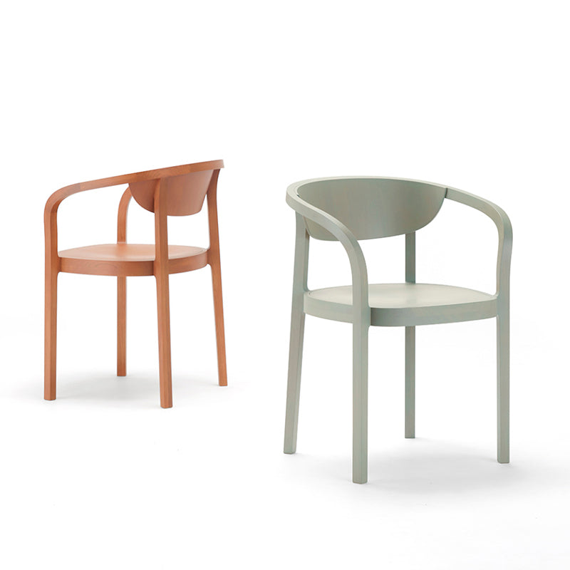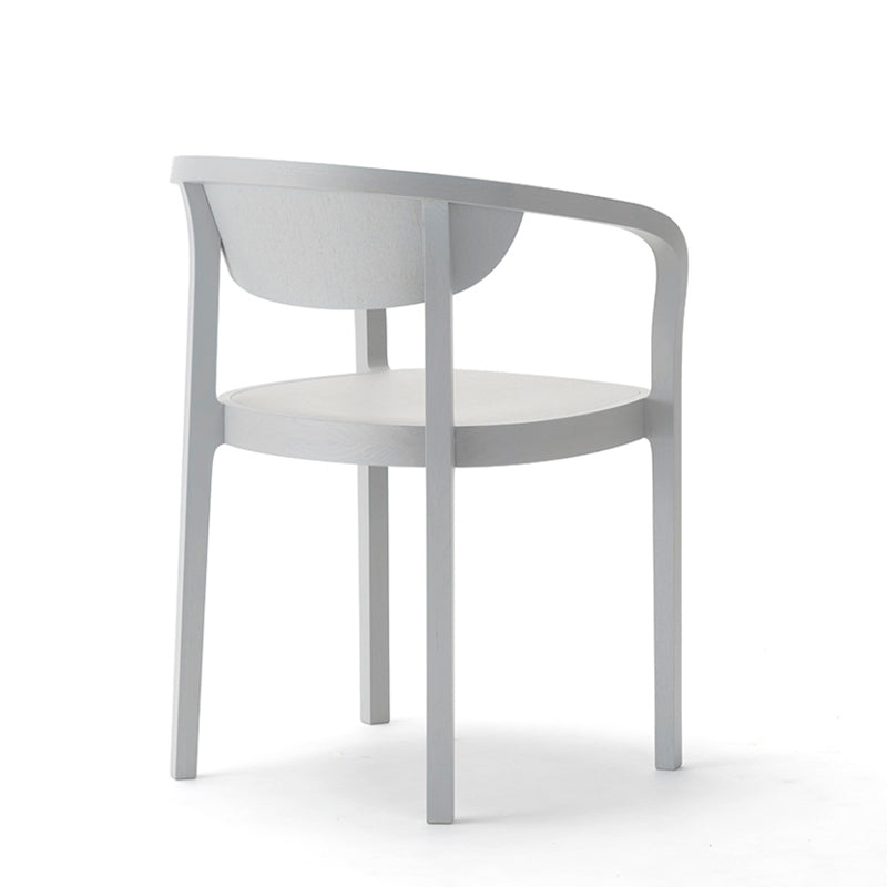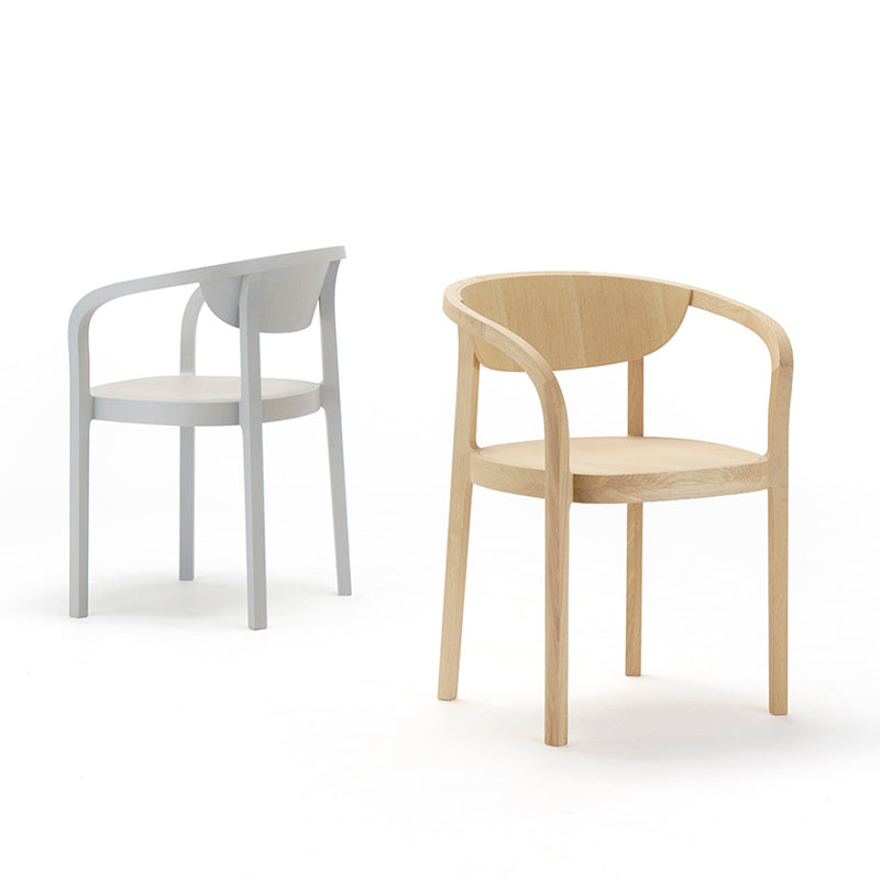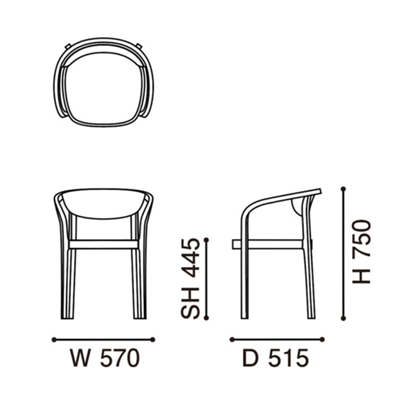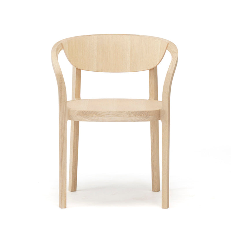 穏やかで明快なラインは、このチェアの存在を際立たせると同時に、数が多くても空間に溶け込みやすいものにしています。