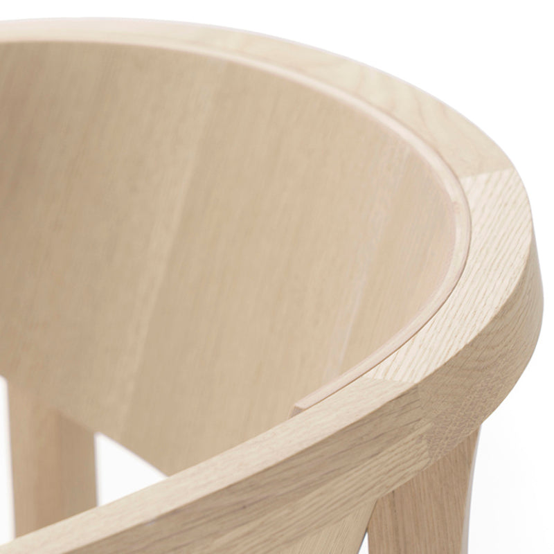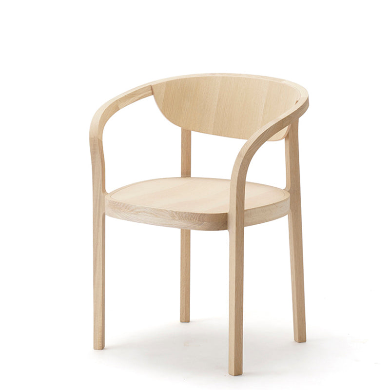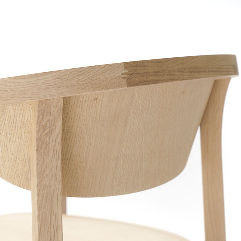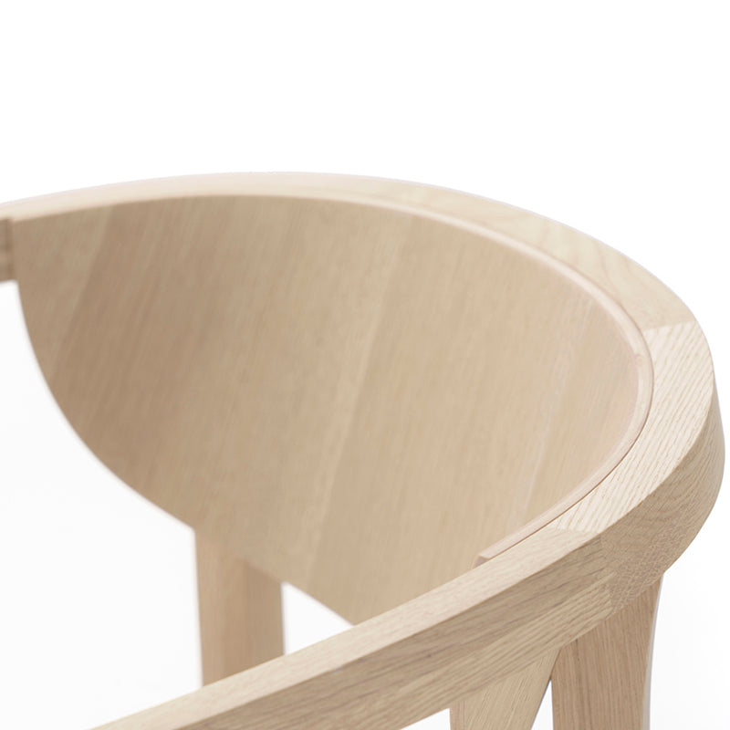 骨格となるフレームにはサスティナブルな方法で調達された国産ナラ材、背もたれには成型合板が使用されています。