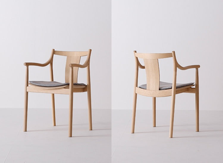 思わず触れたくなる、木の質感と柔らかな表情。どうぞゆっくり、腰を下ろしてください。 身体をしっかり受け止めながらも動作は妨げられることなく、何も感じないほどの快い違和 感は、このうえない座り心地の良さの証。アームに指先を絡ませ、肘から先端までの感触を 味わっていくうちに、自然の営みかの如く、CHORUSは身体に馴染んでいるはずです。椅子 は誰しもの生活の中にある日常的な存在。だからこそ、身体感覚に基づいた造形を導き 出しました。
