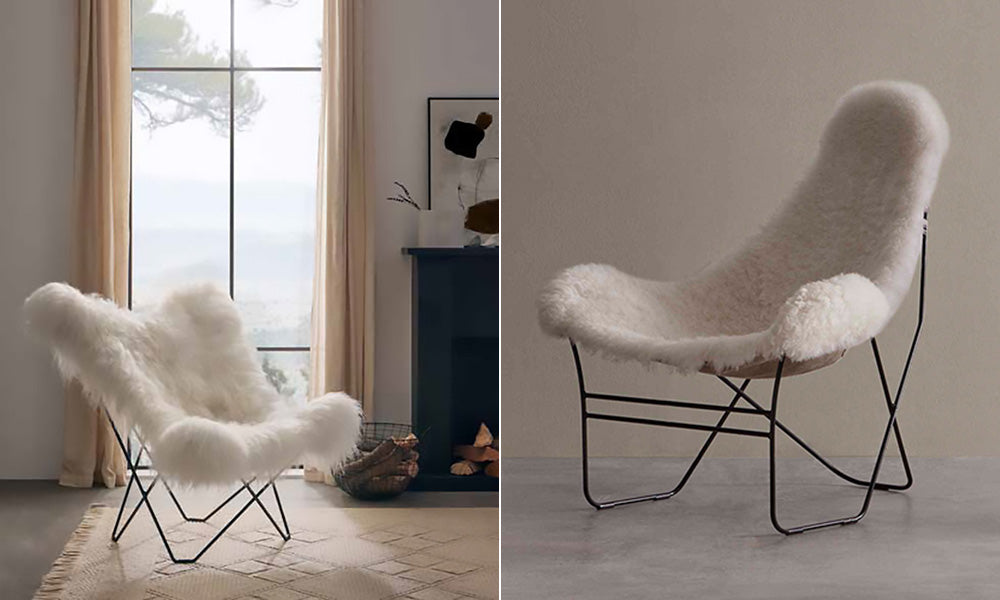 素材に徹底的にこだわり、「アイスランド マリポサ」や「ヴァルハラ チェア」には、アイスランド産の希少なシープスキンを使用しています。