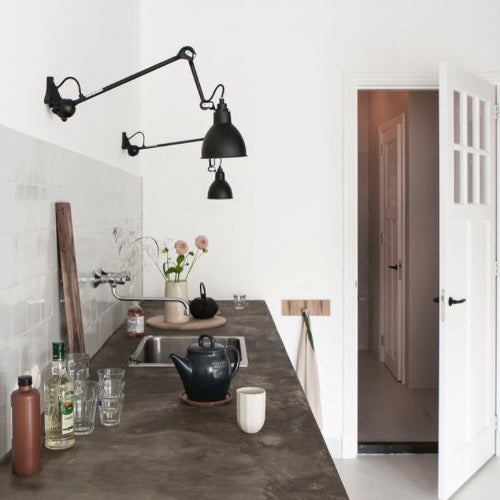 NO.304 L40は壁面より400mm、NO.304 L60は壁面より600mmのアームを持つフレキシブルなウォールランプです。1921年フランスのデザイナー、ベルナール・アルビン・グラは、アトリエやオフィス向けに、堅牢かつシンプルなランプを設計しました。彼の名をとって”Gras Lamp”と呼ばれたこの一連の照明器具は、基本構造にネジや溶接を一切使用しない独自の構造を備え、特にアーム、柄、ブラケット、ベースのデザインそしてディテールは全く独創的であり、その時代を超える革新的なものでした。1927年に特許は、RAVEL社に買い取られ「GRAS」lampとして製造が始まりました。いち早く、そのモダンさと革新的なデザインに魅了された建築家、ル・コルビュジエは、自身のアトリエでこのランプを採用しました。”Gras Lamp”は照明器具の歴史の中で、プロフェッショナルと住環境との両方に取り入れられた最初のデザインとなりました。2008年、この「GRAS」lampの再生の権利を3人の熱心な支持者が獲得、DCW社を設立し、”Gras Lamp”の全ての点に関してオリジナルに忠実に再現し生産をしています。
