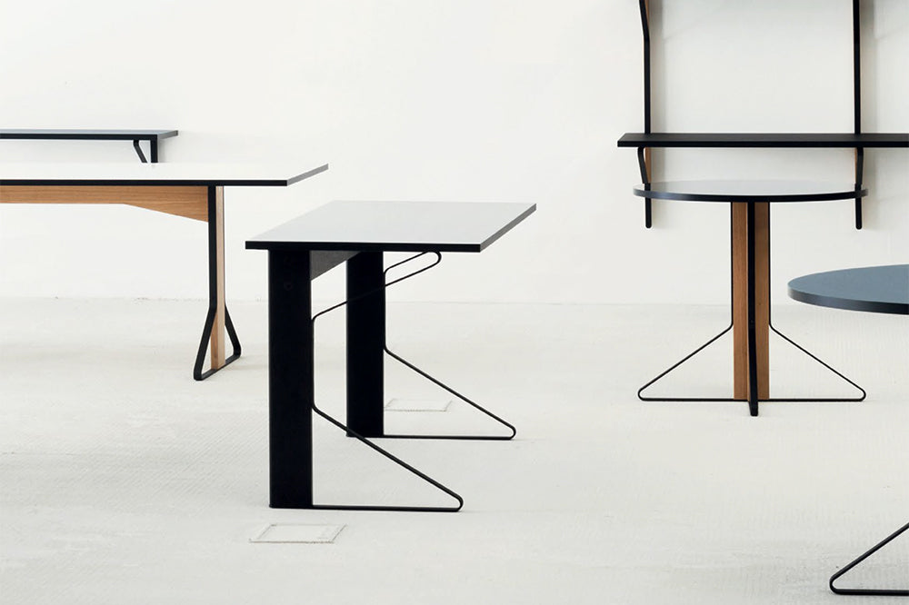 アルヴァ・アアルトが開発した「L-レッグ」のように、シンプルなスチール製の部品を考案し、デスクや棚、コンソールに応用するシステムを作り出しました。