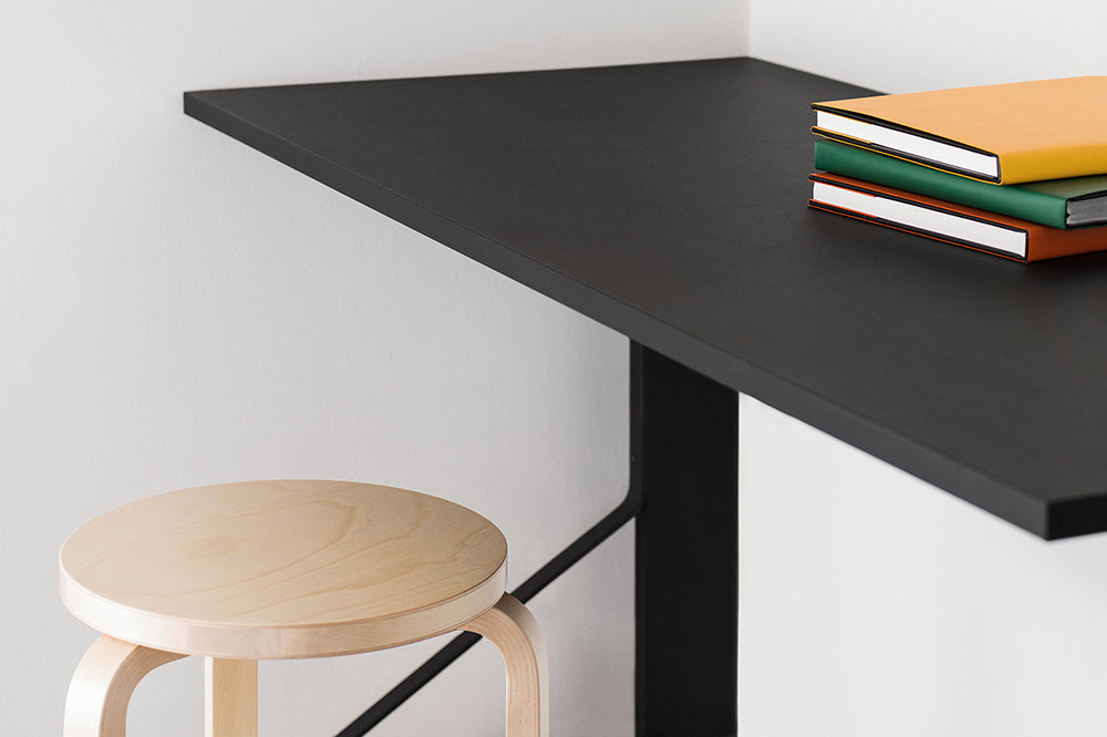 アルヴァ・アアルトが開発した「L-レッグ」のように、シンプルなスチール製の部品を考案し、デスクや棚、コンソールに応用するシステムを作り出しました。