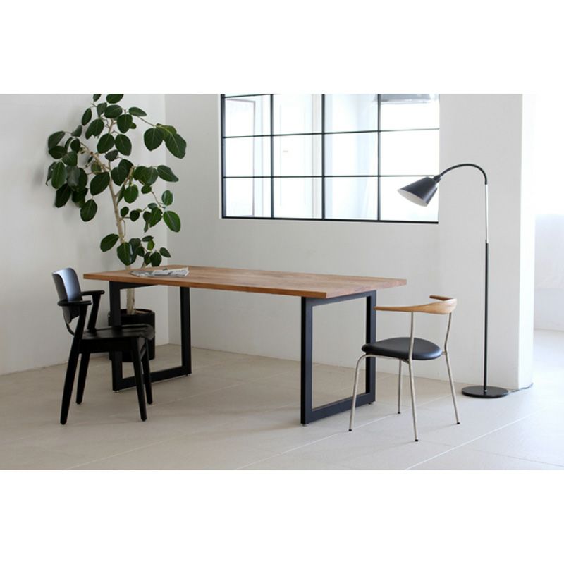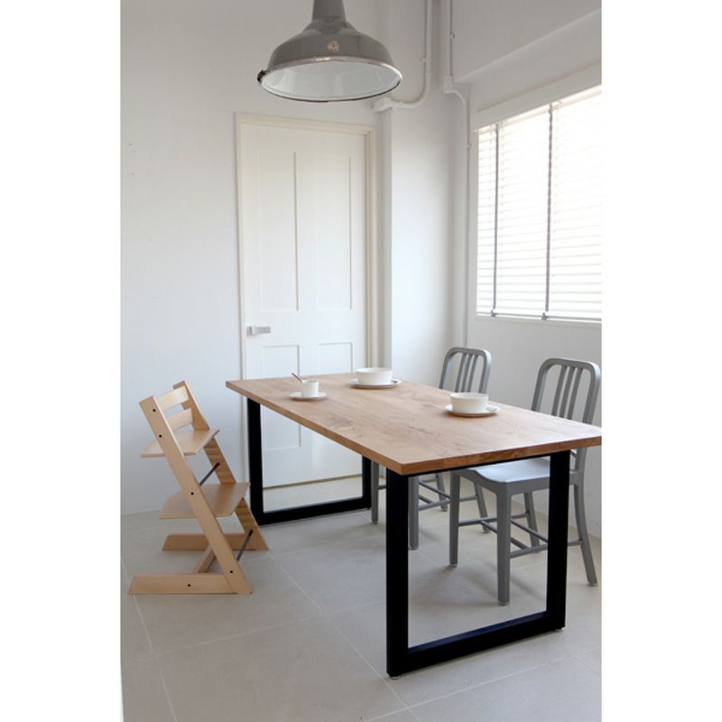 無垢素材の天板と金属素材の脚との組み合わせは、色・質感のコントラストが引き立ち、