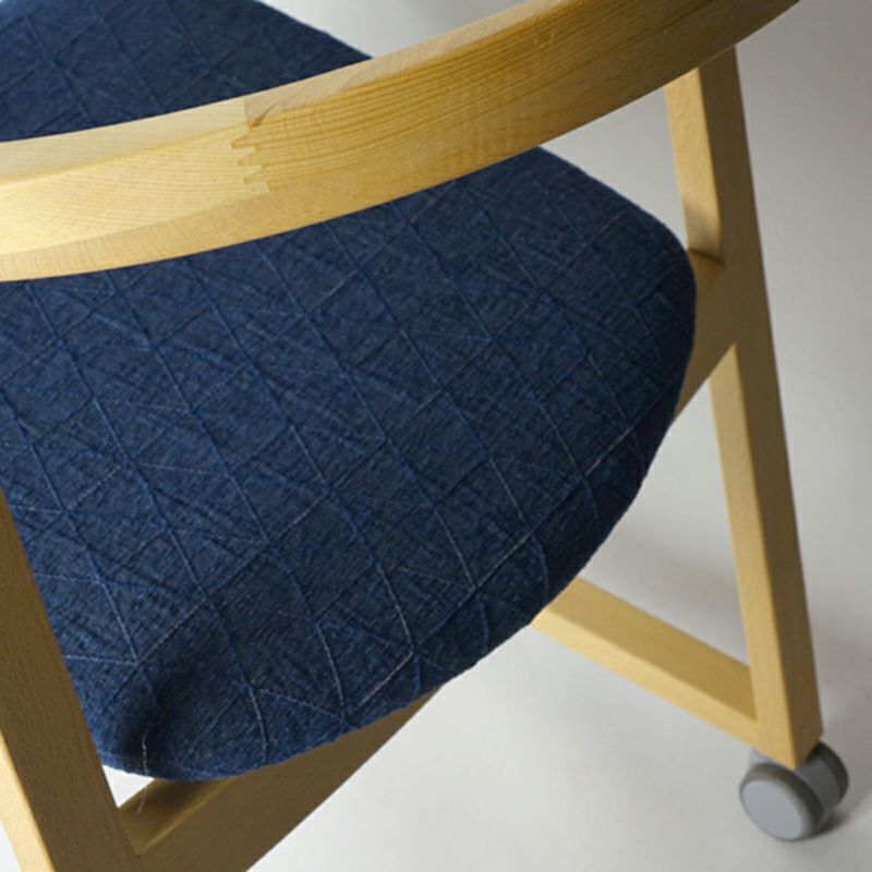ただ、木工家具でコーディネートされた空間に、金属や樹脂のワークチェアは合わせづらいものです。「それじゃあ、宮崎椅子製作所の椅子にキャスターをつけてみよう」と生まれたのが、この椅子です。