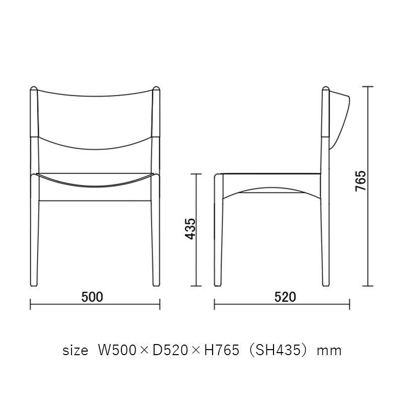 同シリーズのソファと同様にスクエアなデザインですが、座枠は前後と左右のアーチ形状を反転させ、幾何学的な形状を生み出しています。