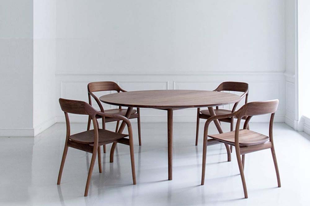 Takoアームチェアを脚の間に1脚ずつ置き、4人用のテーブルとしてお使いいただけます。広いテーブルを少人数でゆったりと使うのもおすすめです。