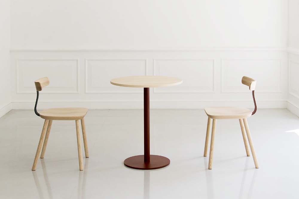 ティーアンドオー無垢材と色のついたスチールの素材のコントラストが新しさを与えるシリーズです。T1チェアは無垢のメープル材を3次元に削り出した座面と背もたれで出来ていて、弾力性のあるスチールでそれらを繋げる事により快適さを向上させています。O1スツールも3次元に削り出しており、座面の中心にある横長の穴は持ち運びの快適さを実現しています。親しみのあるタイポロジーが特徴的なフレンドリーなアイテムです。