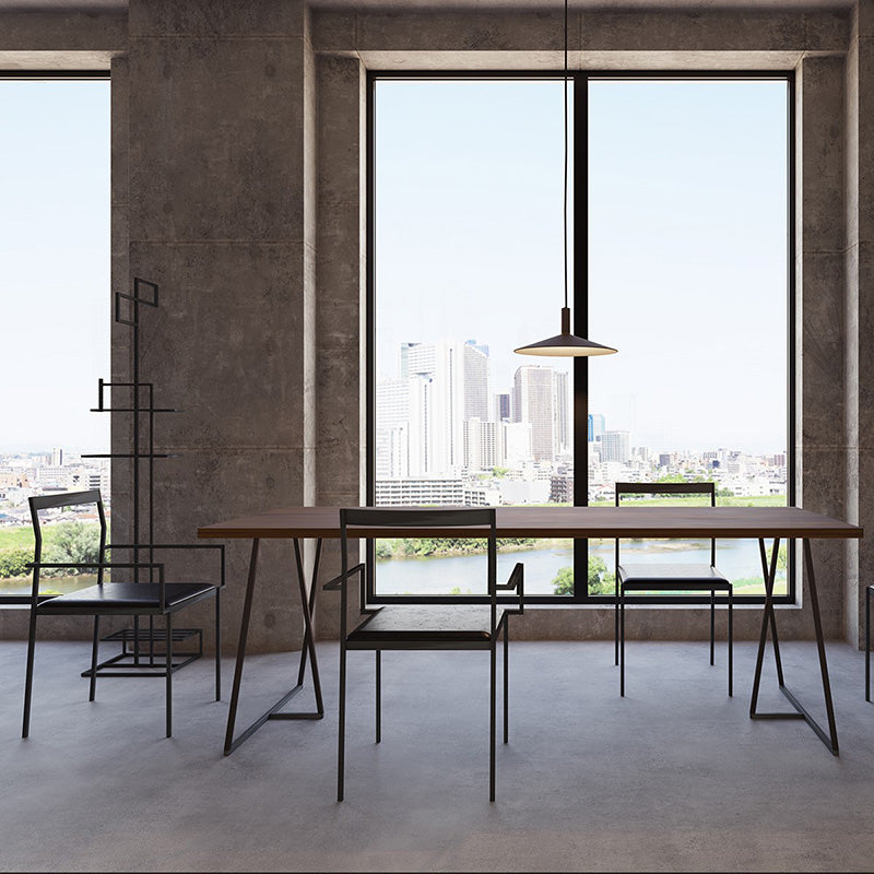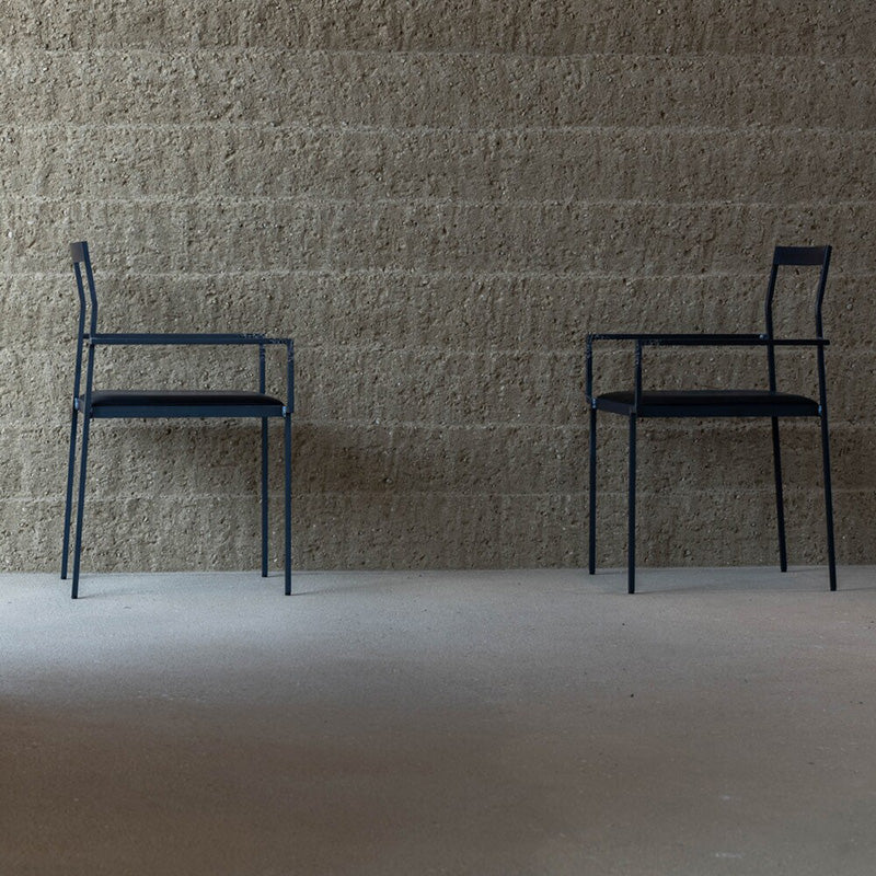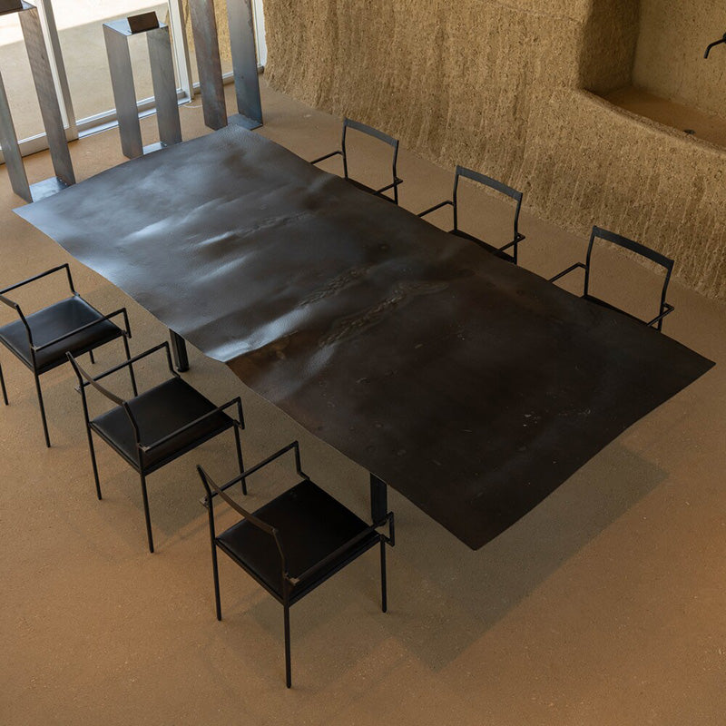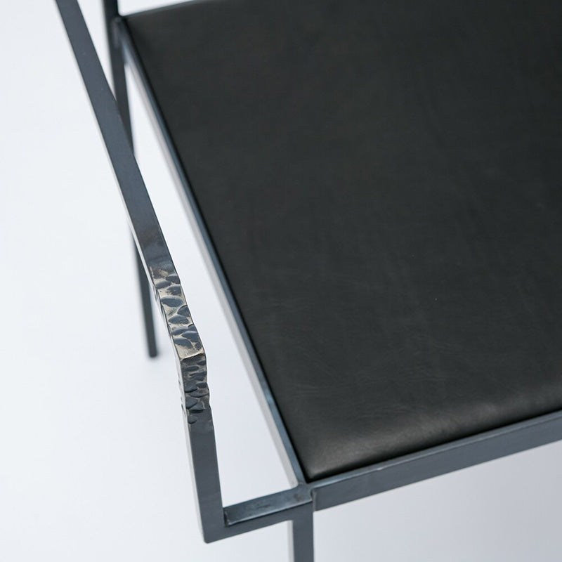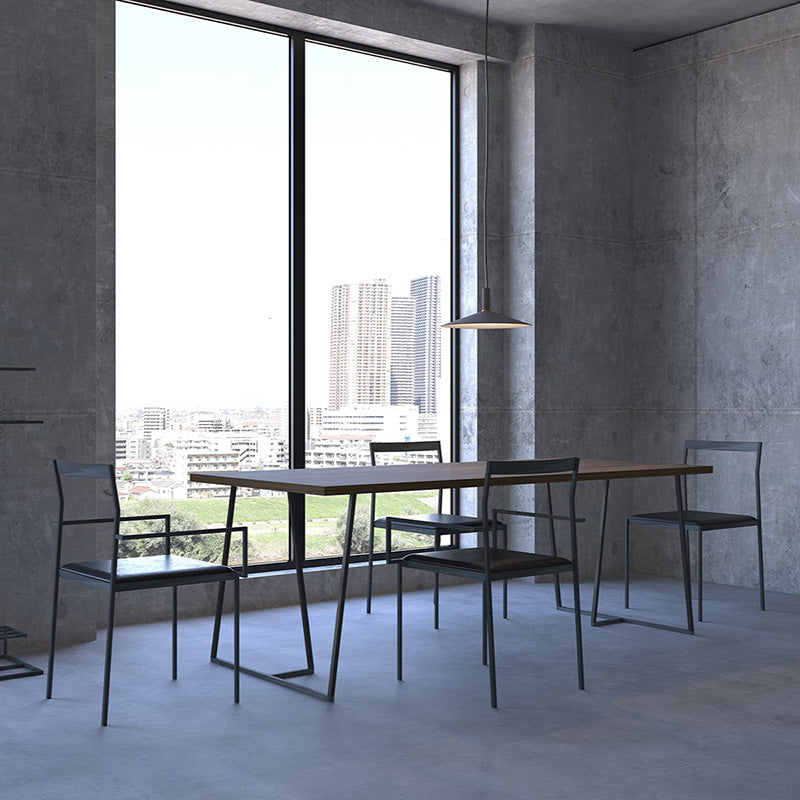 鉄だからこそできるスタイリッシュなデザインです。シンプルなデザインのため、合わせるダイニングテーブルを選びません。張地は革とファブリックからお選びいただけます。クロテツの家具には職人がハンマーで叩き鍛えた無骨な鉄の表情や、無垢の鉄ならではの味わいがあります。鉄のクールさに加え、人の手が加わることで温かみも感じさせます。