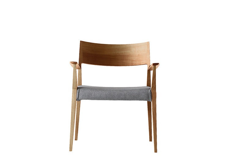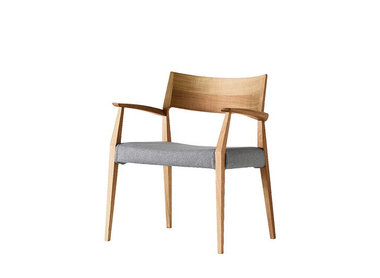 たっぷりとした座り心地ながら、使う人に優しい軽量設計のチェアです。安心感のある広い背板はできるだけ軽くなるよう薄くシャープに仕上げています。