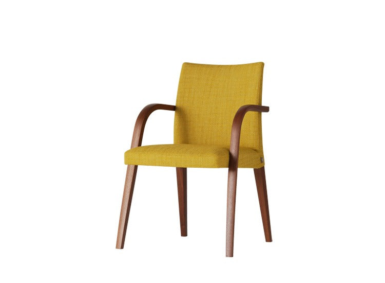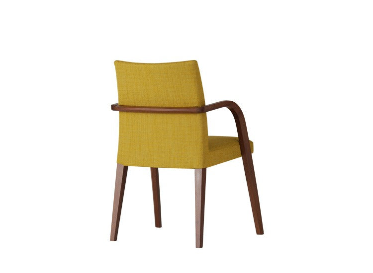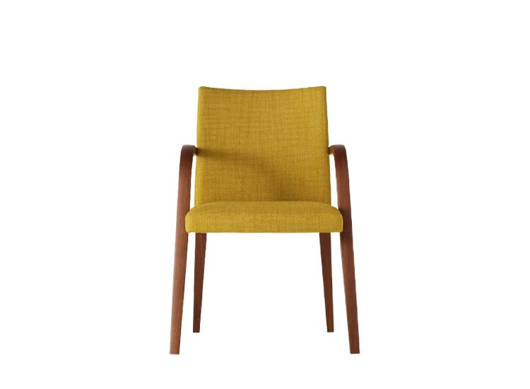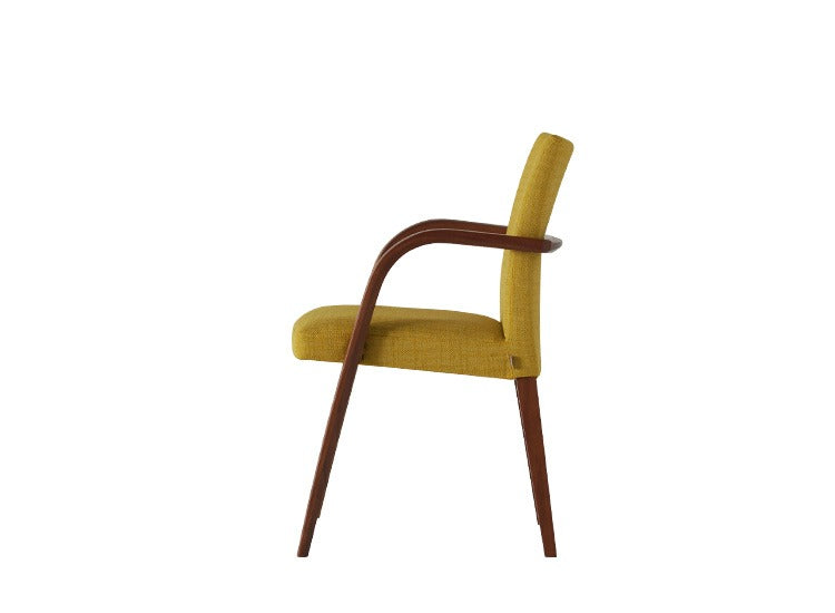 前脚から肘、背部に繋がるラインが印象的なすっきりとしたアームチェアです。背中まで布張りなので優しい座り心地。