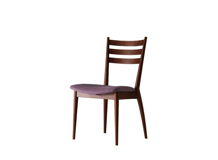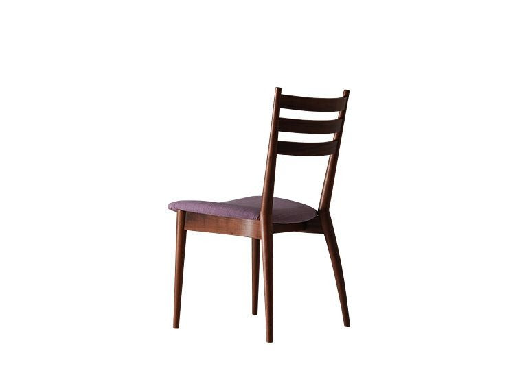 弧を描き突き出すように伸びる後脚が特徴のチェアです。座板下の貫を内側に入れることで座面を薄く見せ、すっきりした印象になるようデザインしました。シンプルでクセがなくどんなテーブルともぴったりマッチします。