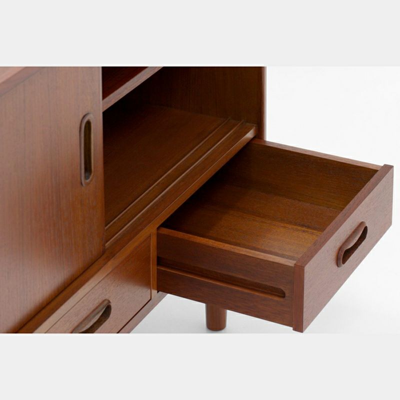 良質なユーズドの北欧家具が年々減少し手に入れるのが困難になった今、現代の暮らしに調和するようサイズを見直したり、ヴィンテージ家具には存在しない新しいアイテムを具現化することが急務であると考え、希少なオールドチーク材を使用し、本物の素材や手仕事での製造にこだわることによって、ヴィンテージ北欧家具と絶妙に融合する質感に仕上げられたオリジナル家具を実現。 ヴィンテージ家具では見つける事が難しい日本の住居空間に合わせたサイズ感や、配線用の穴など現代的な仕様を備えながら、徹底的に当時の製法にこだわって製作されています。