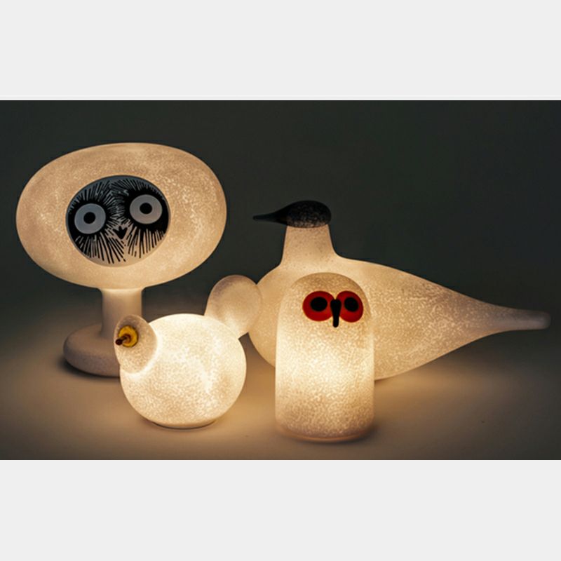 ラインナップは椋鳥(Siiri)やカモ(Kirrasi)、フクロウ(Solo)2サイズ、脚付きフクロウの(Pauturi)の5種。夕食時のテラスやサイドテーブルにはもちろん、子供部屋ではほのかな光で夜を優しく照らしてくれます。