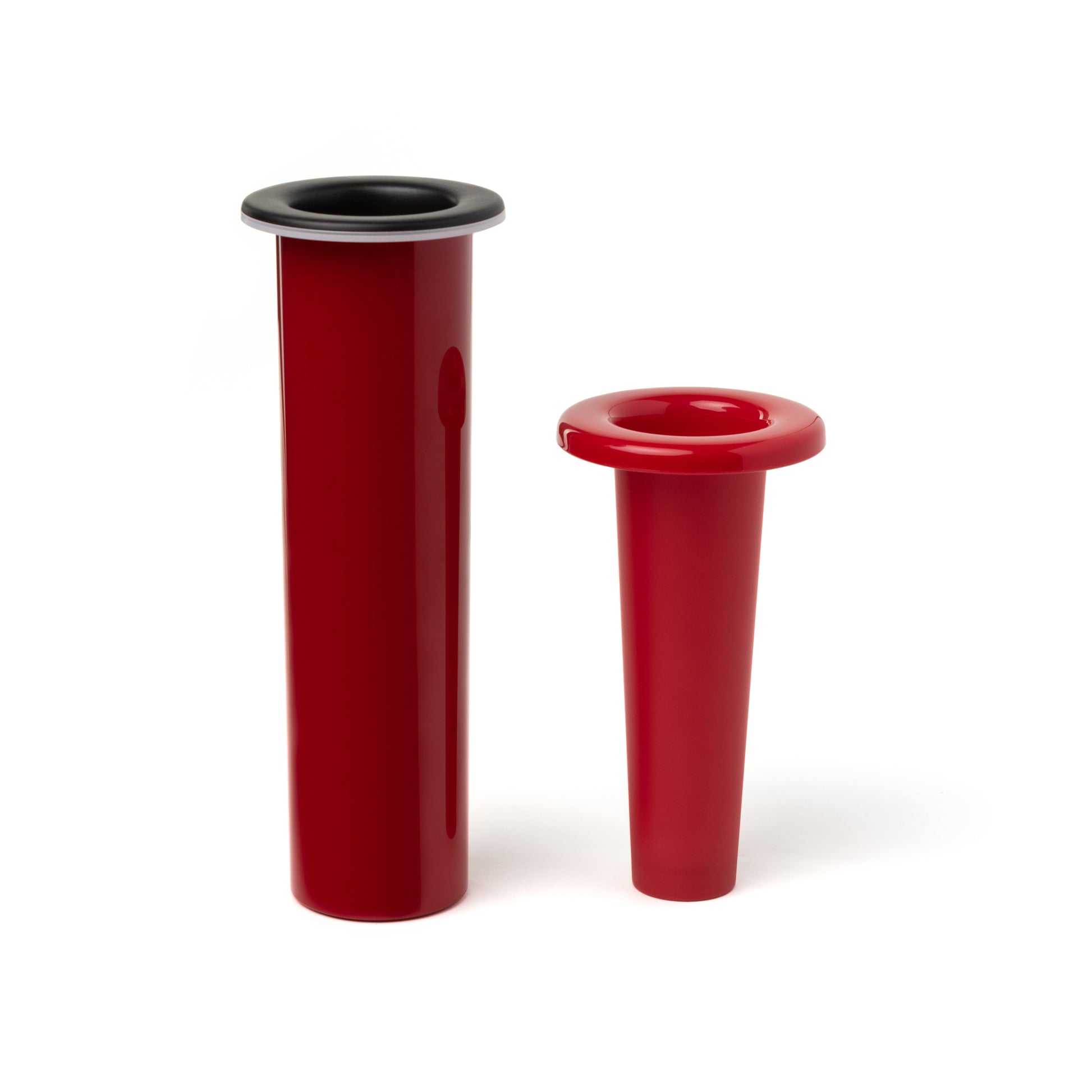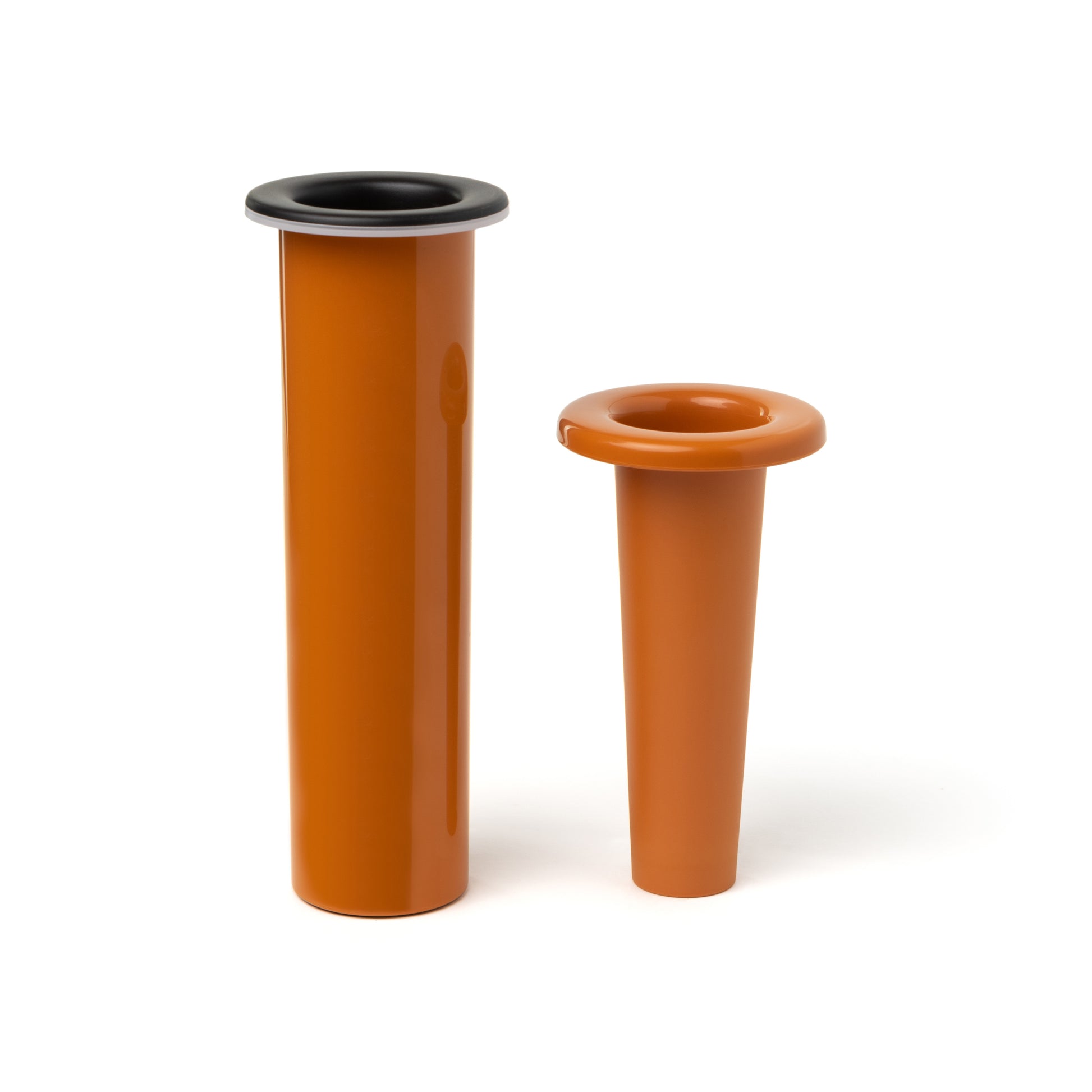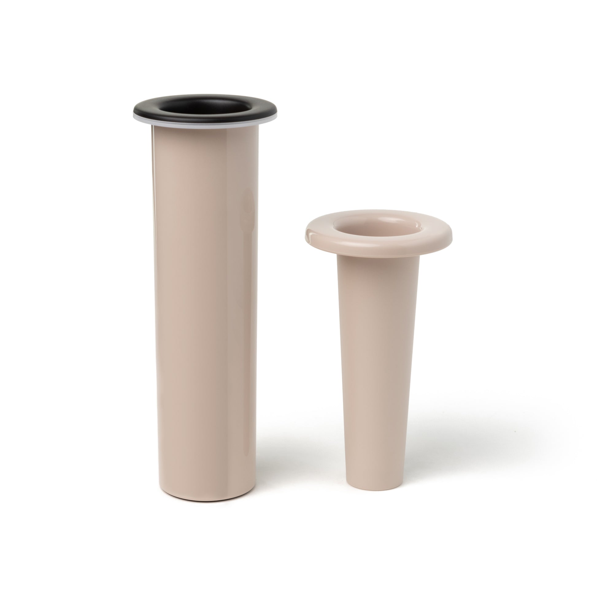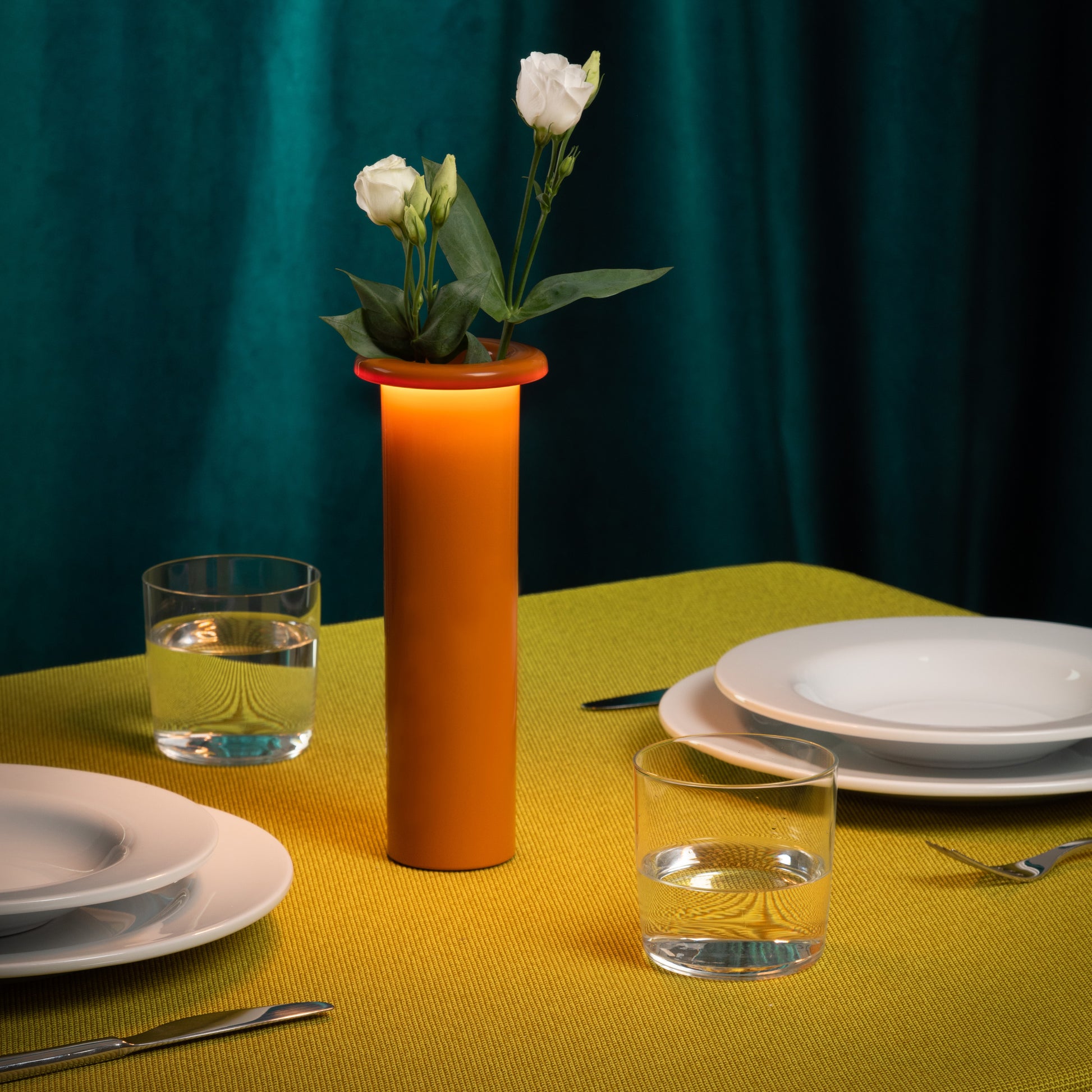 充電式のポータブル照明と、花瓶をひとつにまとめた、明快なコンセプトの「ブーケ」。電子部品とLEDを内蔵した円筒形パーツに、着脱式カップを重ねた構造で、花を飾れば花瓶としてもお使いいただけるポータブル照明です。