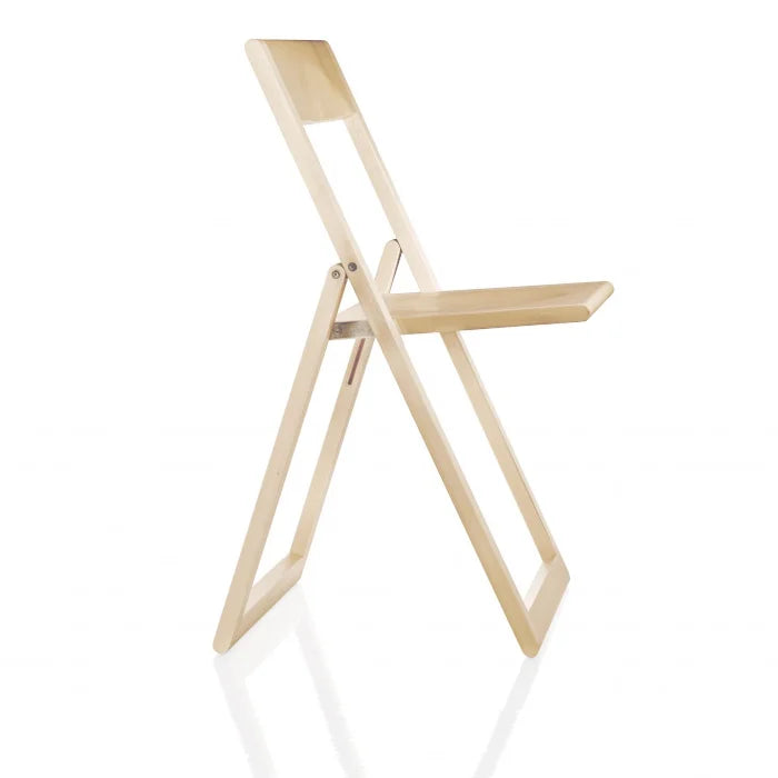 長きに渡り世界中で使われてきたこの折りたたみ椅子「AVIVA」。カラーリングは木目を生かした染色塗装、5色展開です。