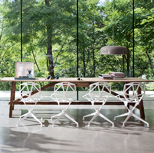 今では「Chair_One」 (2003年)に代表されるように、ダイキャストアルミニウムやウッドなどの新素材や環境問題に取り組むエコ素材など、 新しい製造方針へと挑戦していますが、プラスチックはこの先もMagisを代表する素材のひとつとなるでしょう。 Magisは難解で複雑、そしてハイリスクなプロジェクトに向き合い、 強い挑戦意欲と高められる技術の蓄積によって支えられて、プロジェクトを完遂させます。