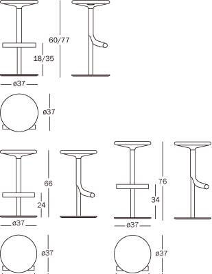 上品なカラーリングと柔らかなラインが特徴的な昇降式カウンタースツール。 座面部分のみ本体と同色のファブリックカバーがついており、適度に柔らかく座り心地もなかなか良いです。どっしりと重みがあり、一本脚ですが大変安定しています。座面裏のボタンを押すと高さが昇降する仕組みです。
