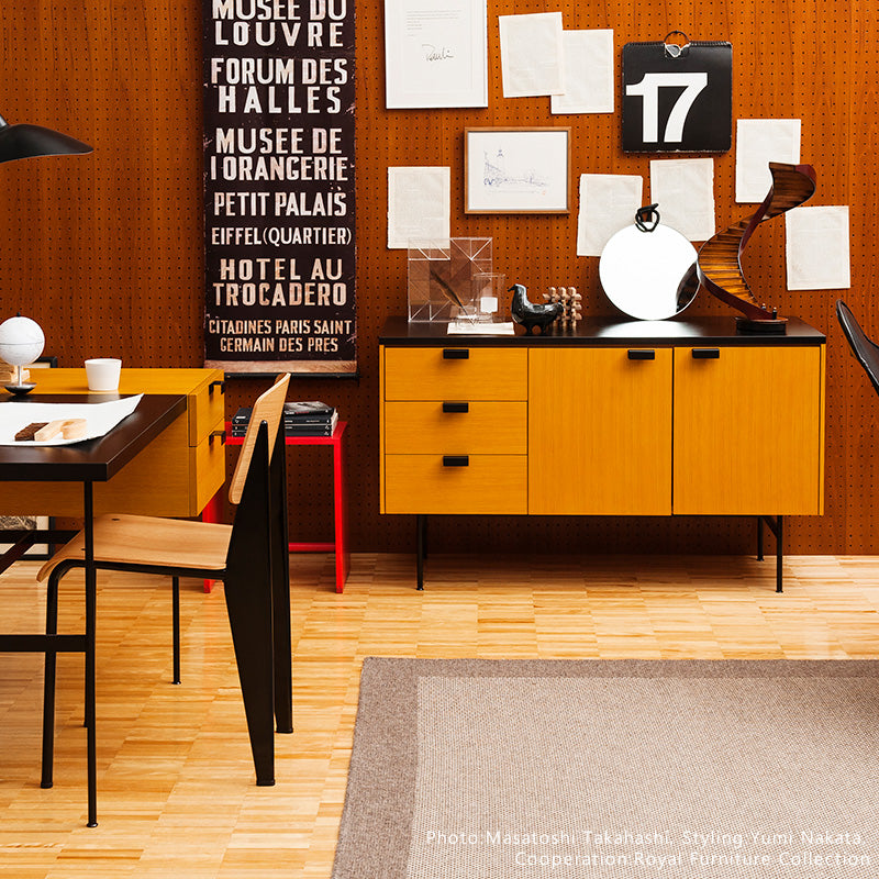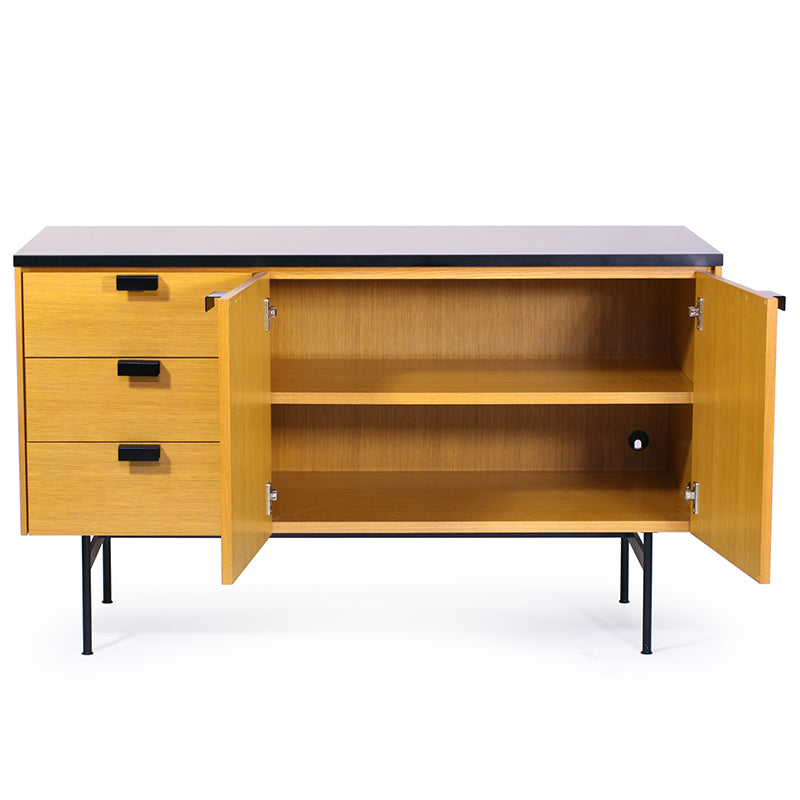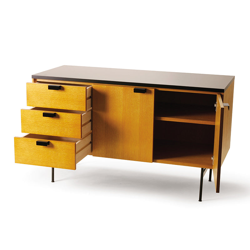 ピエール・ポランが1950年代に手掛けたF031デスクと同じシリーズのサイドボード。1960年代を象徴する有機的なデザインとは異なり、初期作品にみられる直線を基調としたミニマルなデザインと、機能性を追求したフォルムが特徴です。