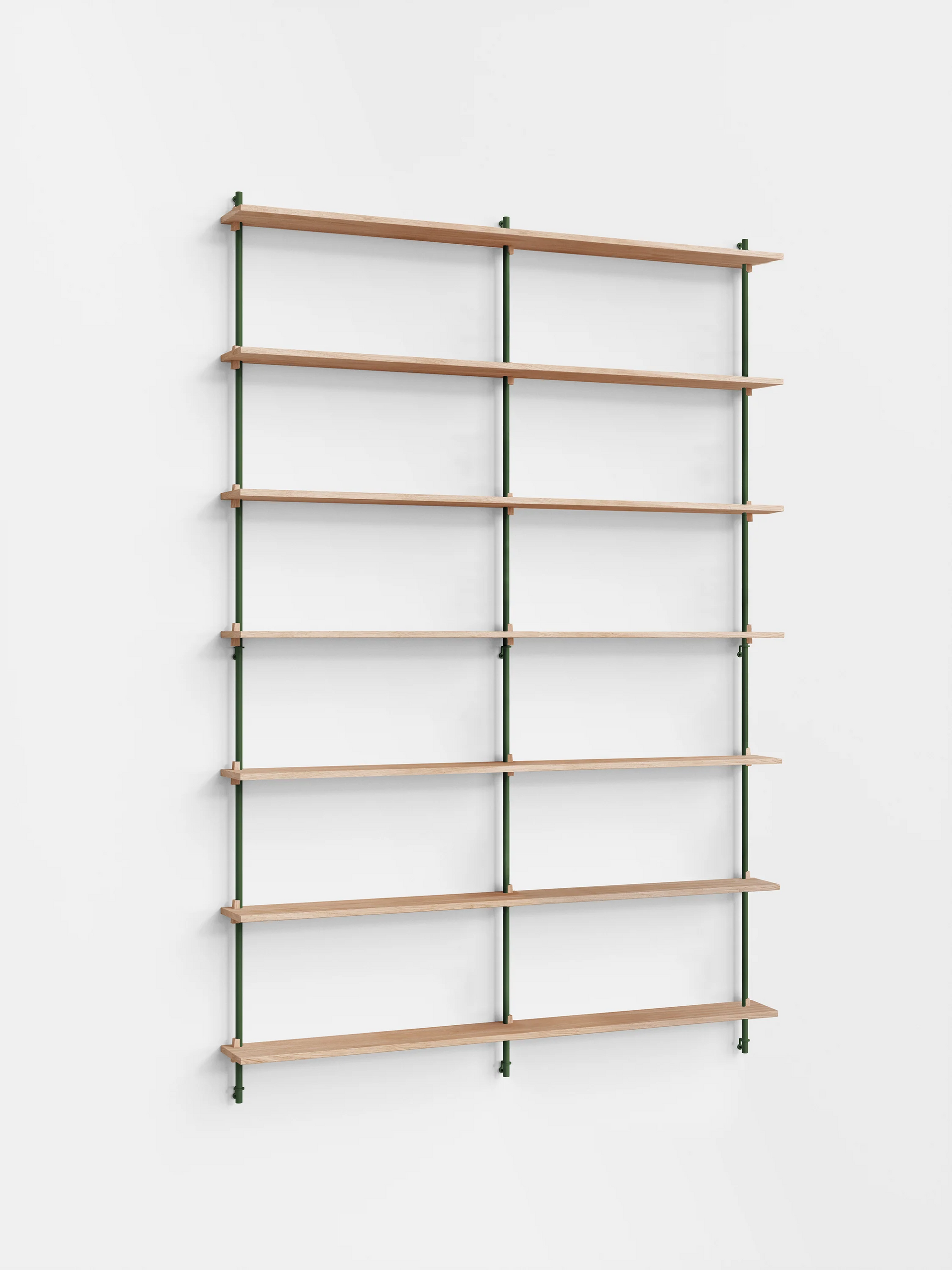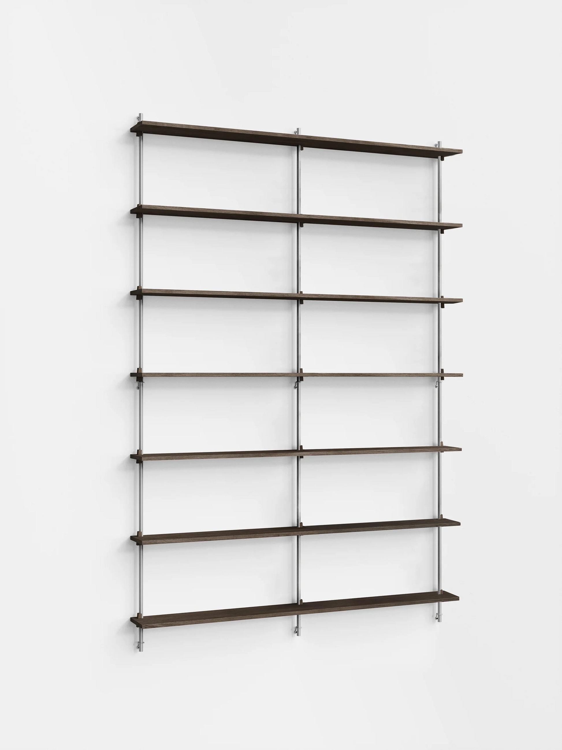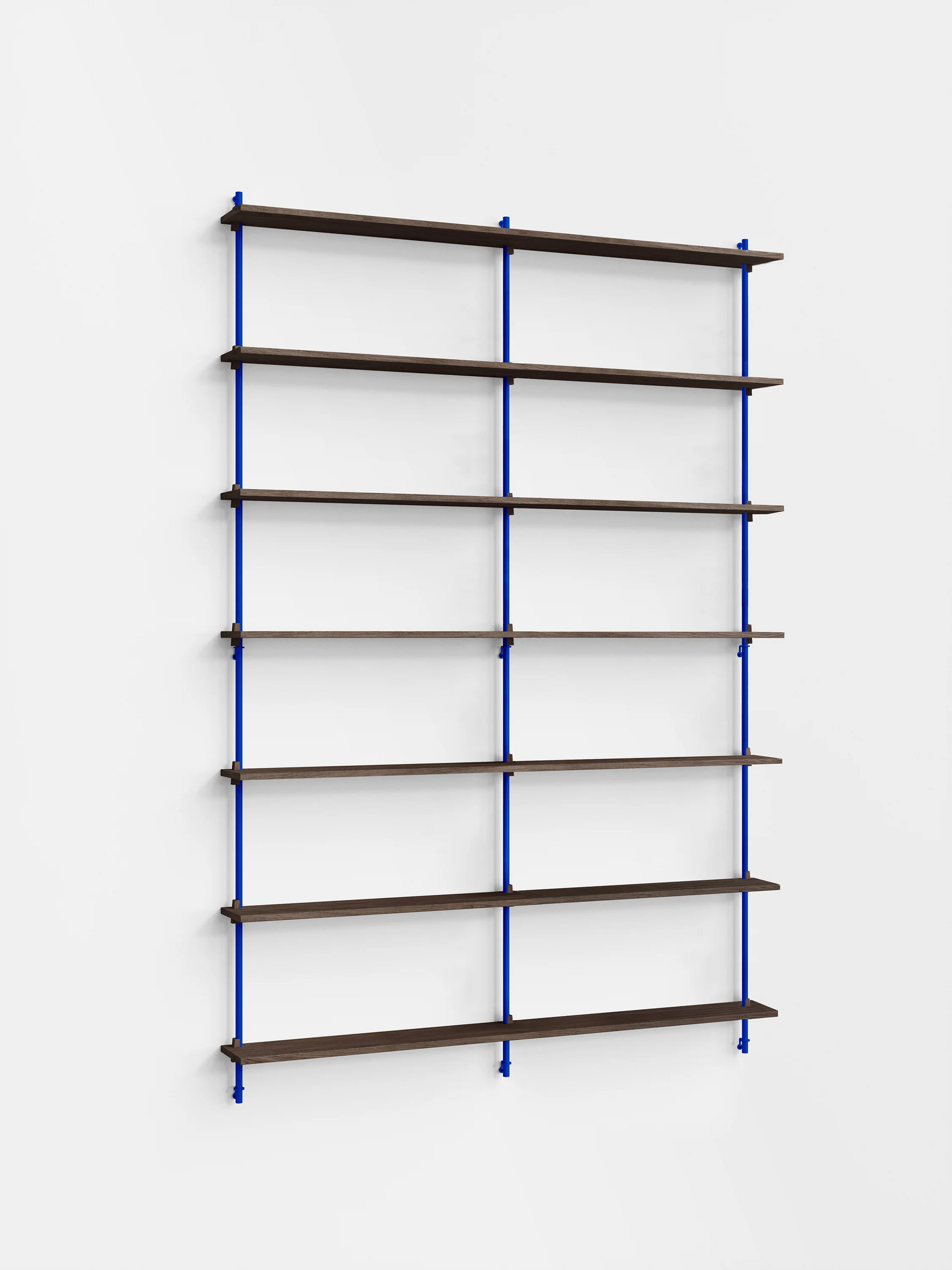 115cmの脚2本をつなぎ合わせた230cmで2列のユニット。162cm幅の棚板7枚の組み合わせです。