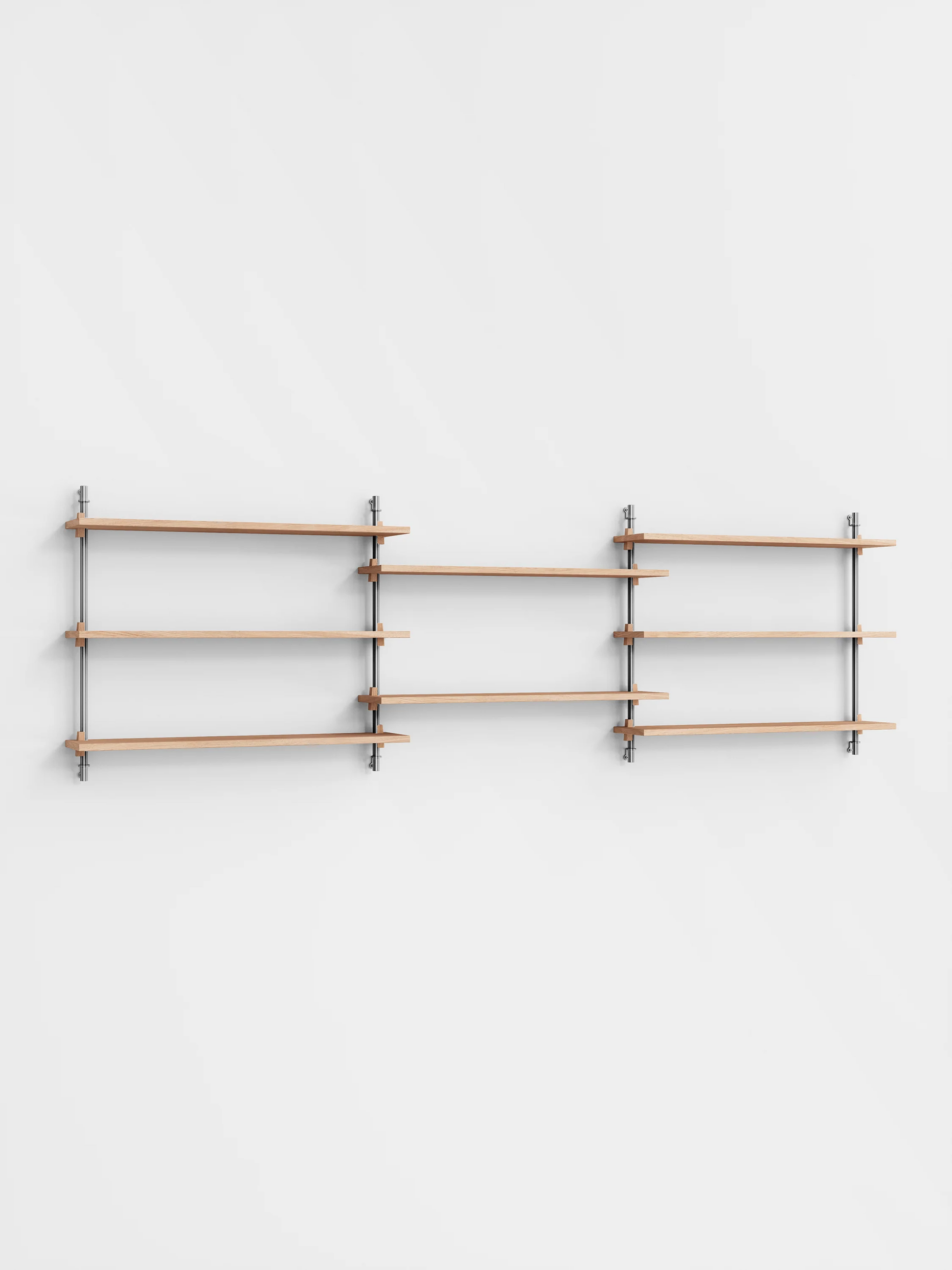 ウォールシェルフは棚板と脚の組み合わせで自由に形を想像できるシェルビングシステムで、壁面に取り付けることを目的としたユニットです。